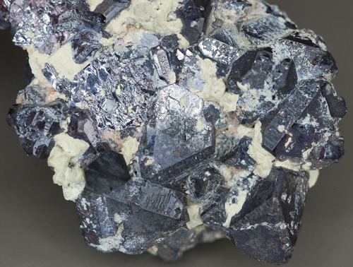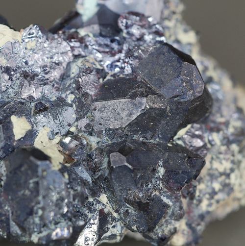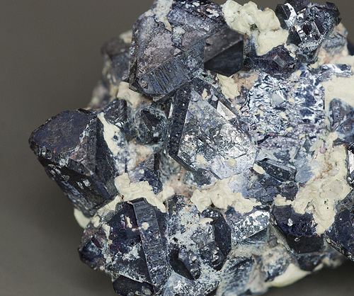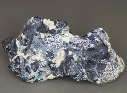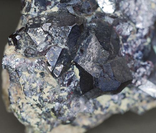 Several octahedrons of dark red cuprite are spread all over a bit of matrix. (Gmineral Gallery)Data last checked on 5th Jan 2022 - specimen may no longer be available