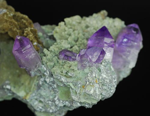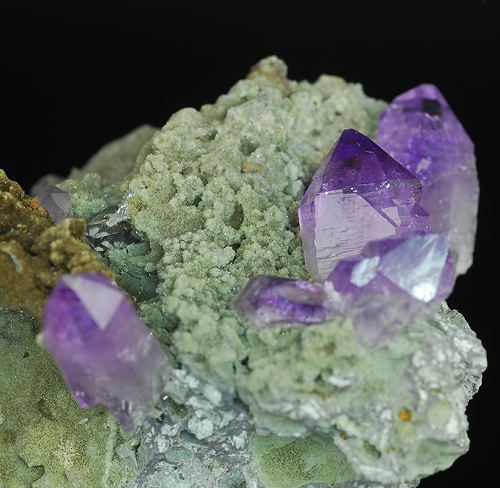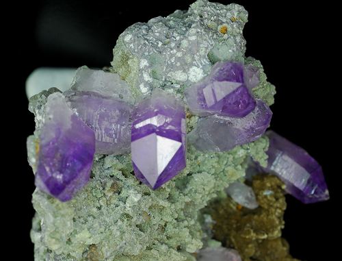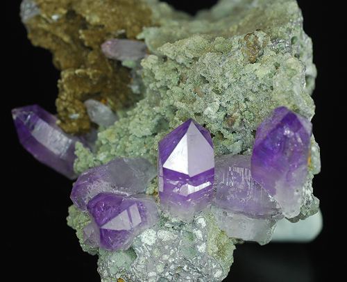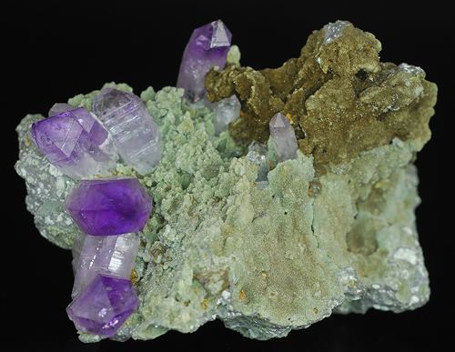 Some big typical amethysted top cristals of quartz are in good evidence scattering out the matrix. Classic from Las Vigas ! (Gmineral Gallery)Data last checked on 5th Jan 2022 - specimen may no longer be available