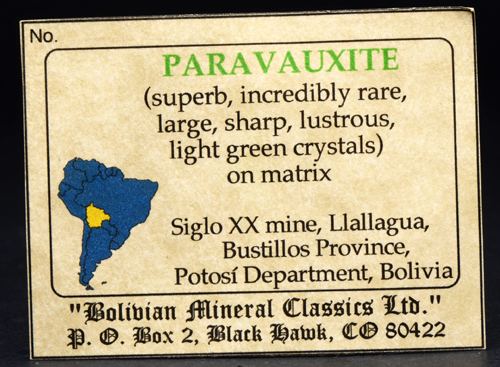 Superb, extremely rare and large lustruous lihgt green xls of Paravauxite on matrix.Both sides coverage.From a find occurred some decades ago and never repeated since in this quality. (Ferrero Gallery)Data last checked on 5th Jan 2022 - specimen may no longer be available