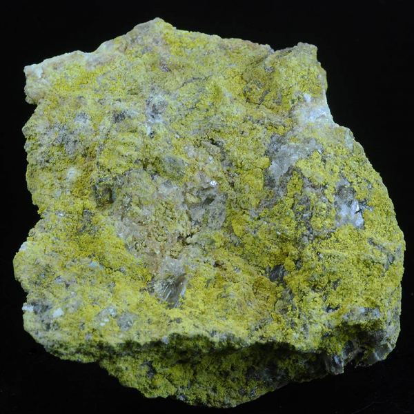 A yellow and dusty crust of metavoltine covers completely the surface of this specimen., that is crystallized on both its faces.It was found from mine about 10 years ago during and undergroup trip in Tuscany. (Gmineral Gallery)Data last checked on 5th Jan 2022 - specimen may no longer be available