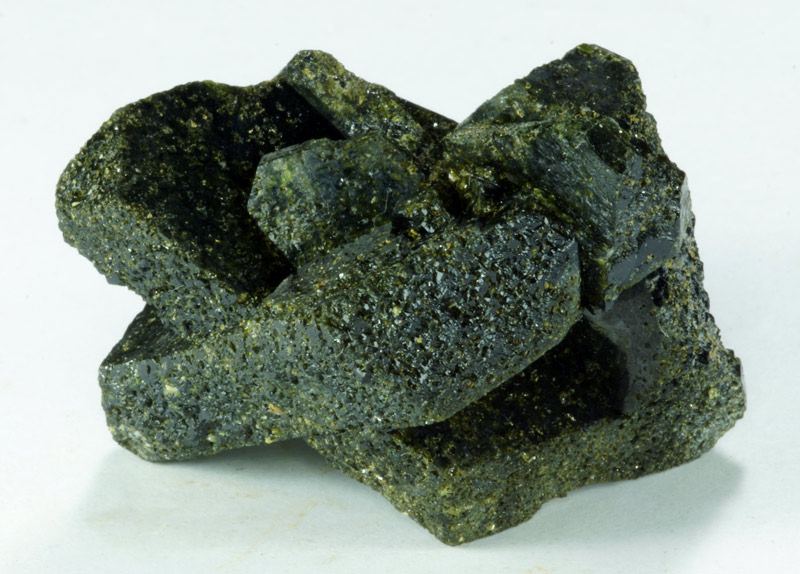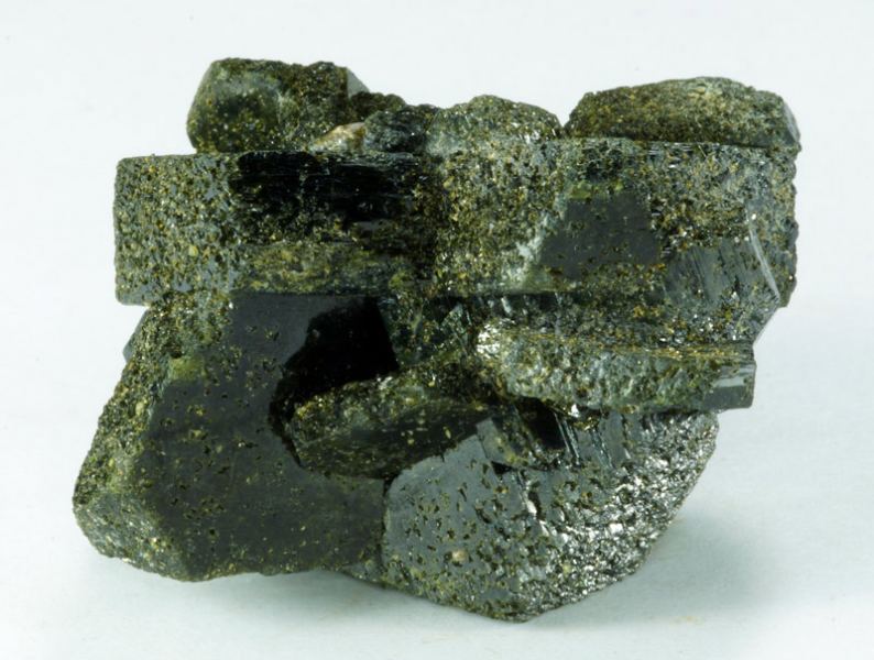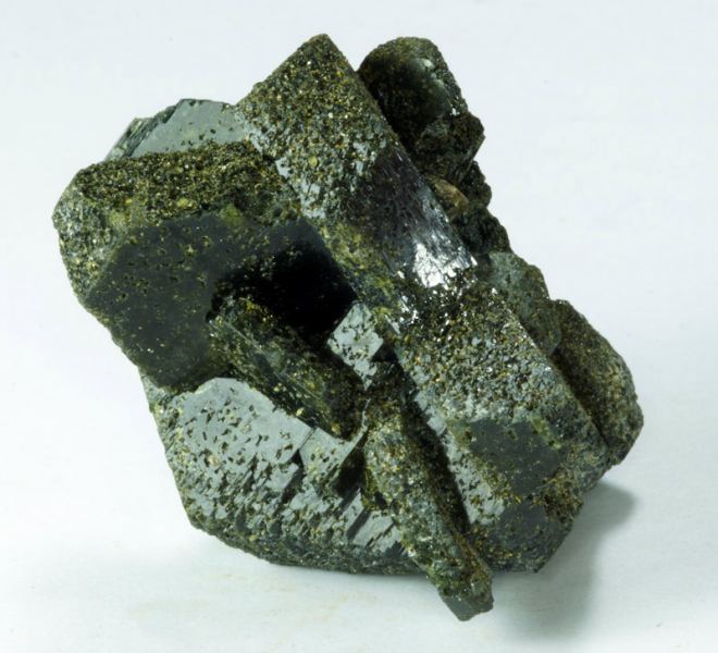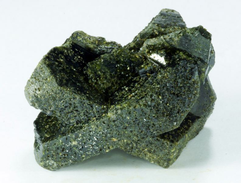 Rare geminted epidote crystals cluster. On the surfaces of the crystals are scattered some microcrystals of titanite. (Rolando Gallery)Data last checked on 5th Jan 2022 - specimen may no longer be available
