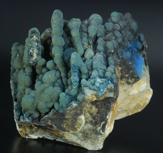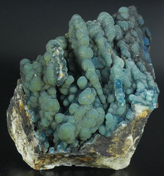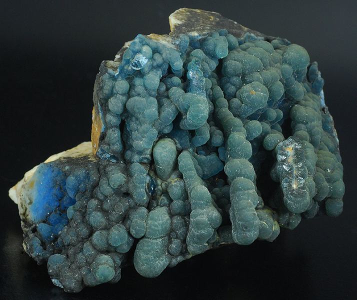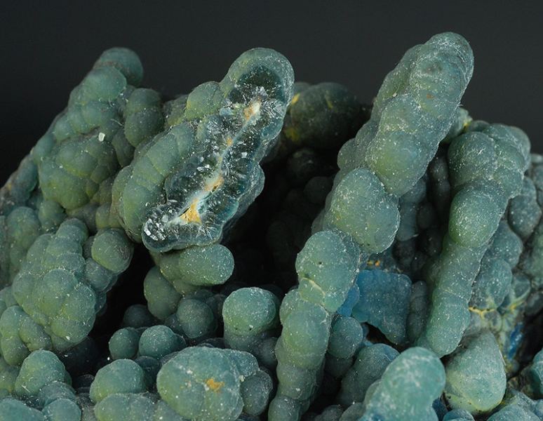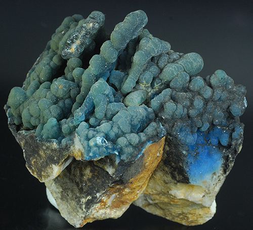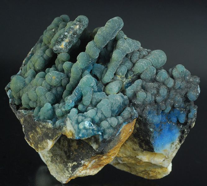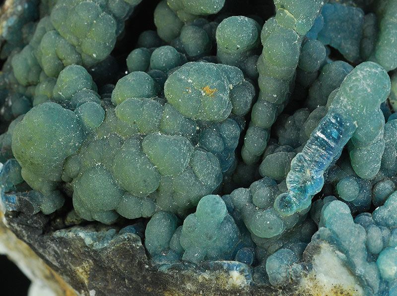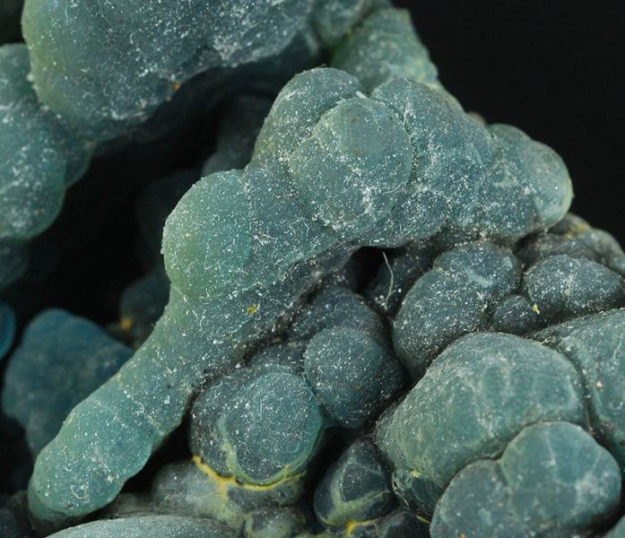 Excellent cluster of plumbogummite that covers with a thick crust the yellow pyromorphite.The unhealthy area shows the details of the internal crystallization of the spheres. (Gmineral Gallery)Data last checked on 5th Jan 2022 - specimen may no longer be available