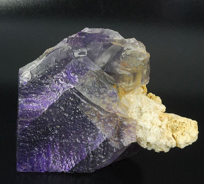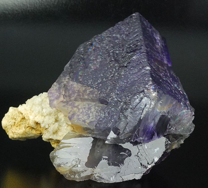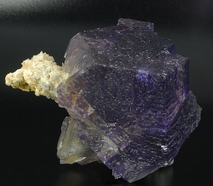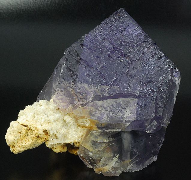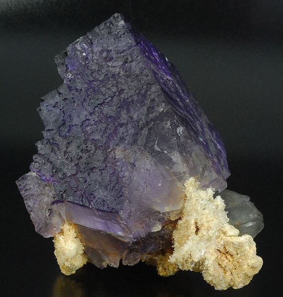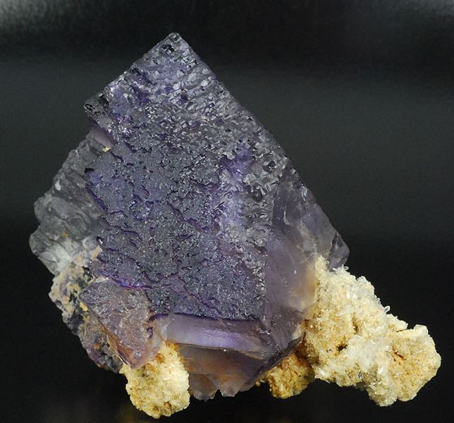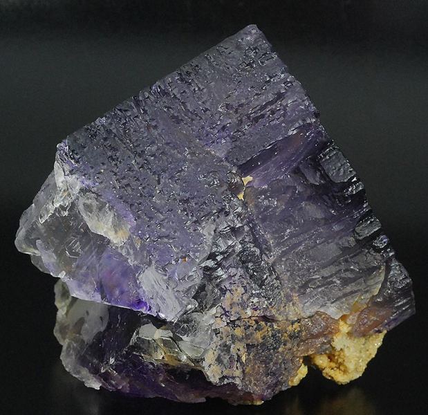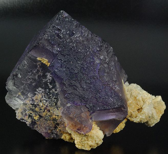 Typical big cube of fluorite from this famous alpine mine: its color is violet with some lighter areas and some internal 'ghosts'.The bottom is not complete and the evident fissures are natural and don't completely cross the piece. (Gmineral Gallery)Data last checked on 5th Jan 2022 - specimen may no longer be available