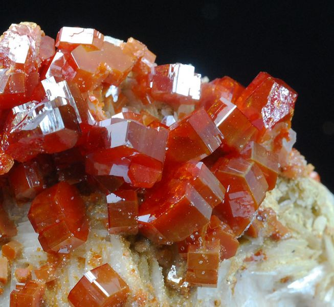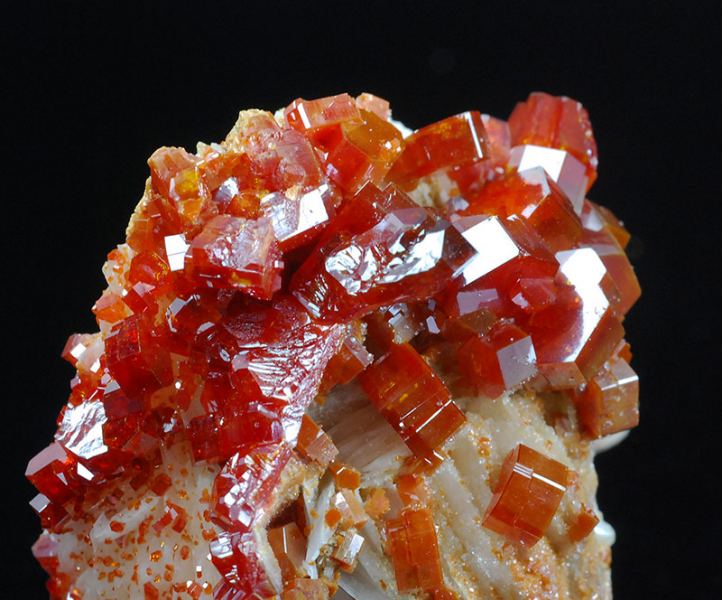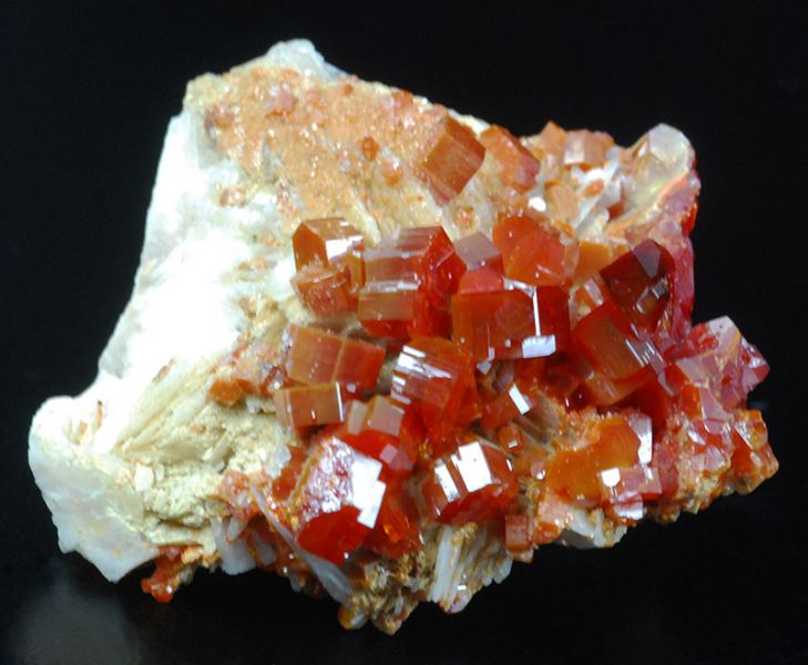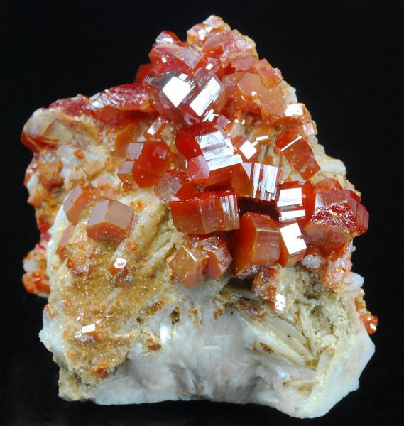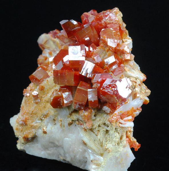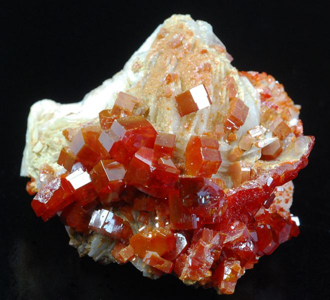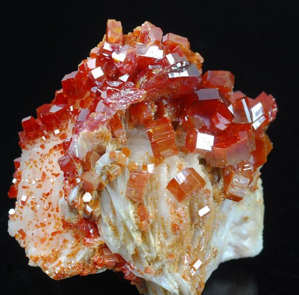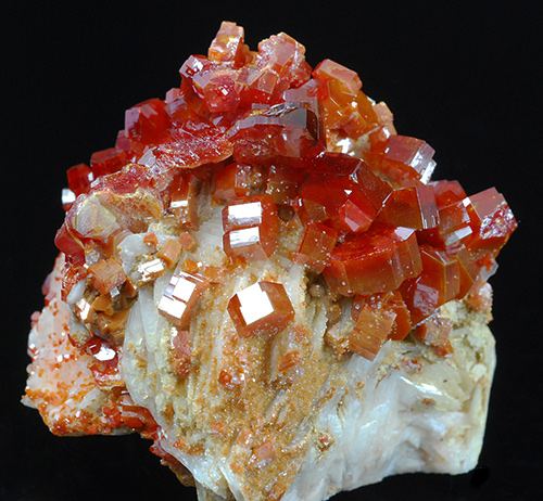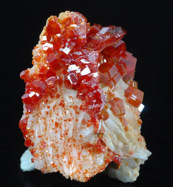 Nice cluster that is covered by brilliant,red and perfect crystals of vanadinite. They are placed over the specimen to make a red ridge. (Gmineral Gallery)Data last checked on 5th Jan 2022 - specimen may no longer be available