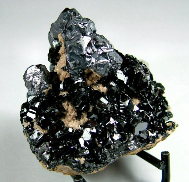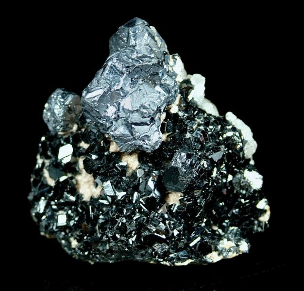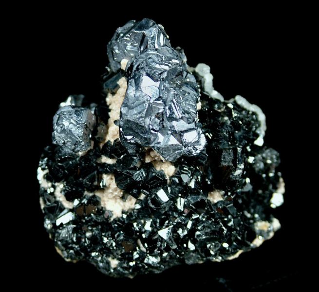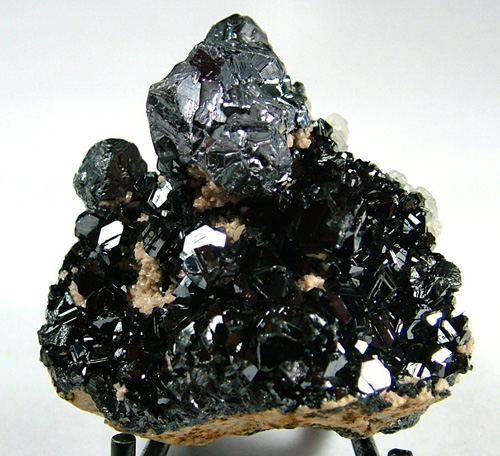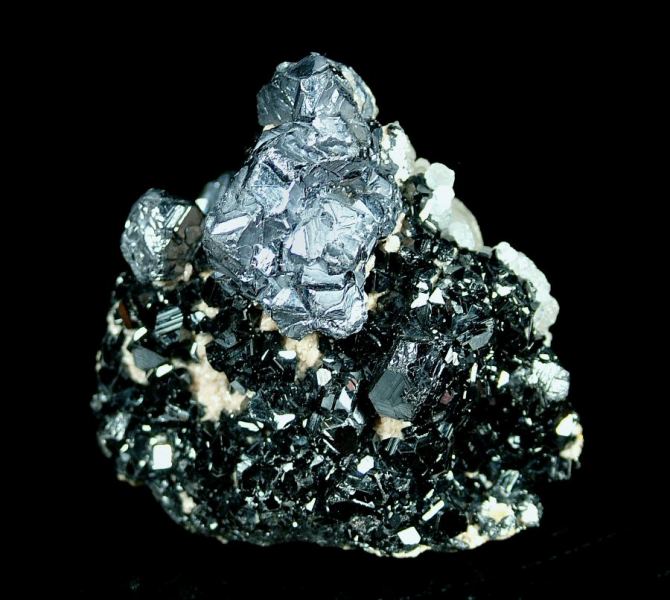 A big group of Galena's crystals (27 mm) lays on a carpet of Sphalerite var. Marmatite's crystals (10 mm). The paragenesis is completed by Calcite and Dolomite slightly pink. Very shiny and aesthetic, in good conditions. (Silvia Gallery)Data last checked on 5th Jan 2022 - specimen may no longer be available