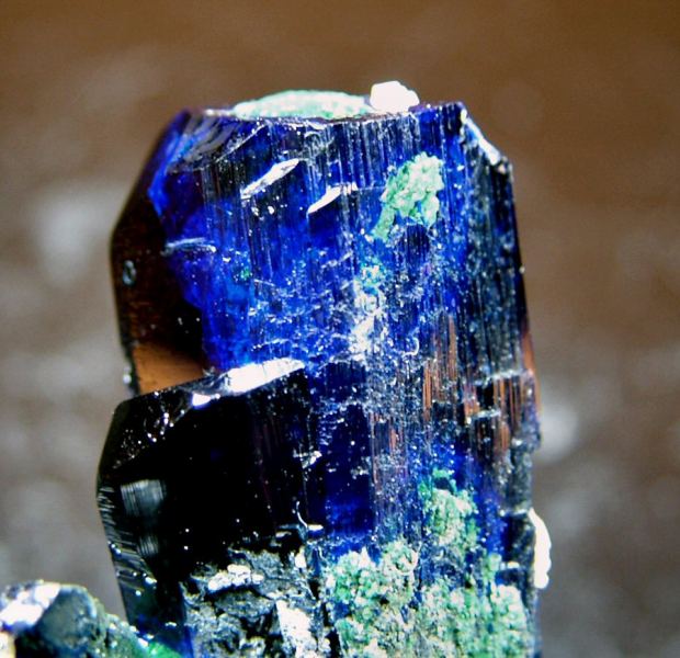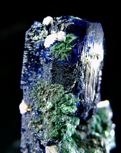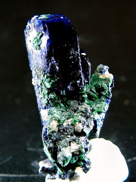 A big Azurite's crystal, with other smaller, metamorphosed only in part in Malachite, shiny, well defined, with little Cerussite's crystals (9 mm), with a little rupture almost invisible to the naked eye. (Silvia Gallery)Data last checked on 5th Jan 2022 - specimen may no longer be available