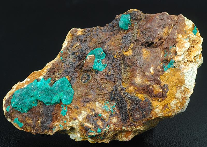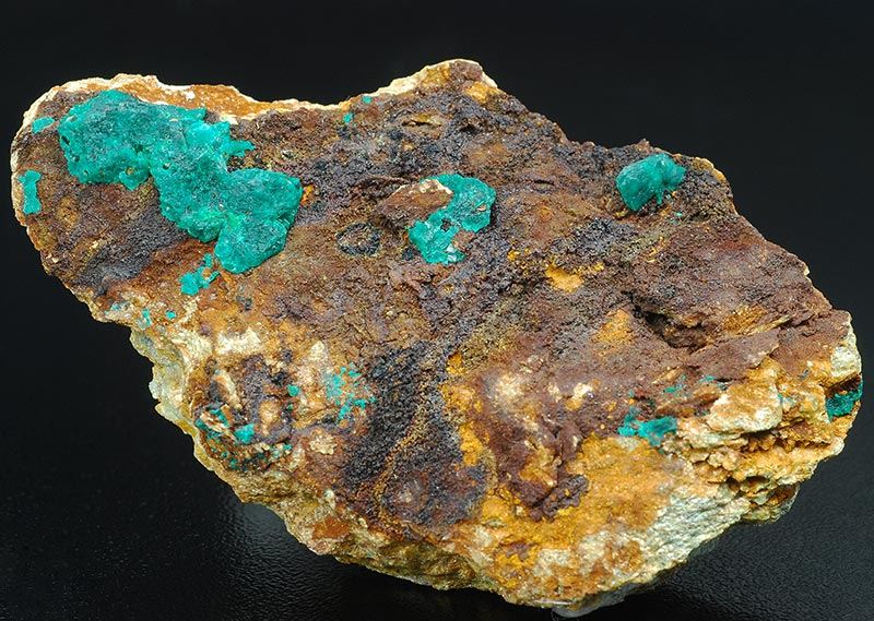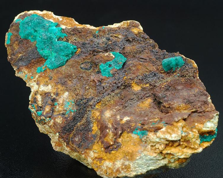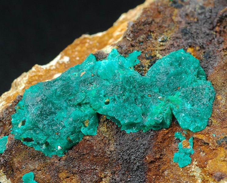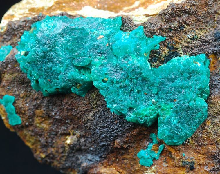 A dark green colored aggregate of euchroite is in good evidence over the dark brown matrix.It's of 27 mm of size, some other minors are visible too. (Gmineral Gallery)Data last checked on 5th Jan 2022 - specimen may no longer be available