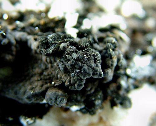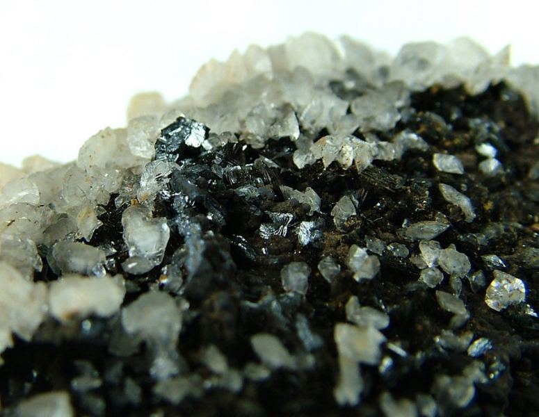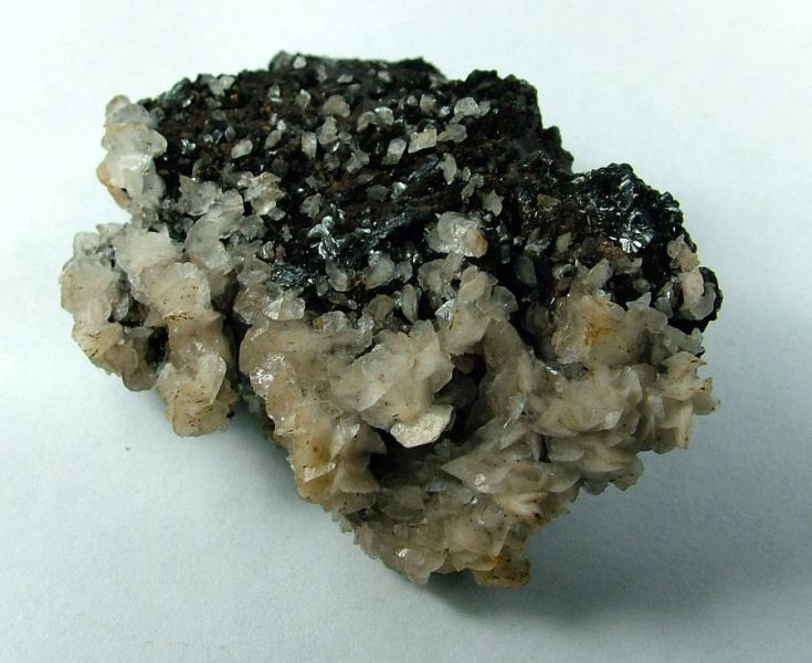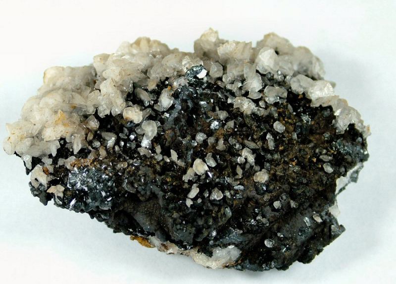 Black crystals, with metallic sheen, partially covered by Calcite's crystals. Crystallized also on the rear side. (Silvia Gallery)Data last checked on 5th Jan 2022 - specimen may no longer be available