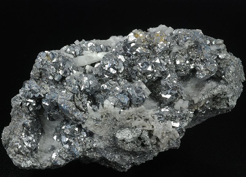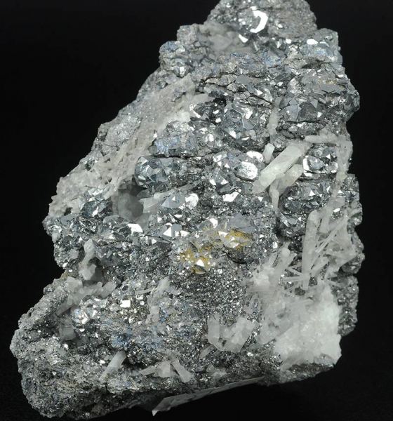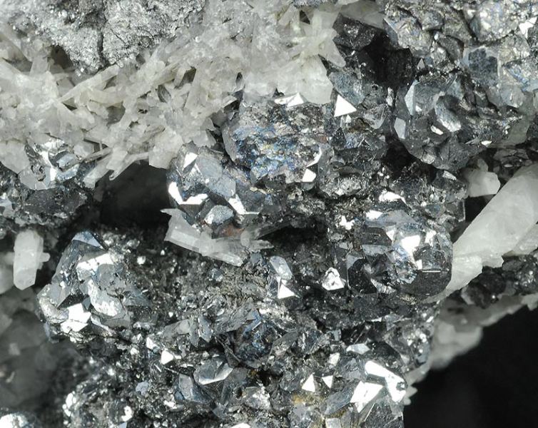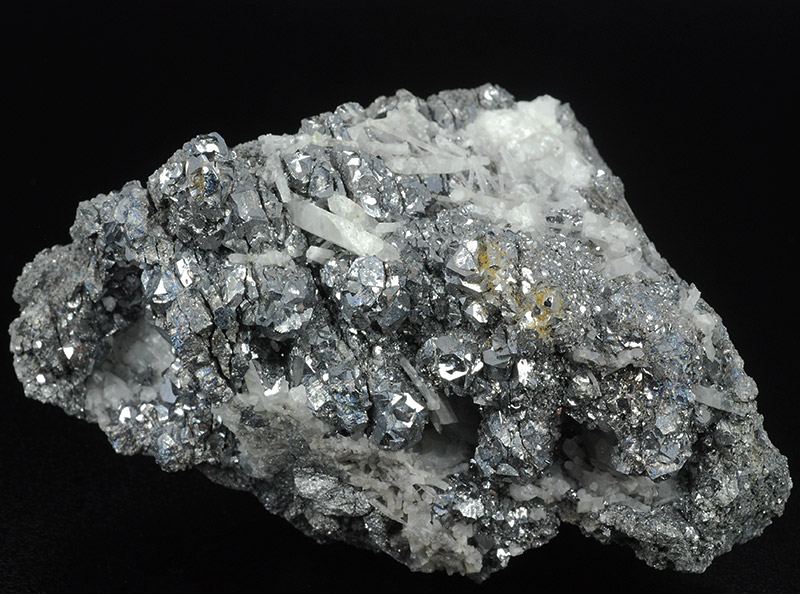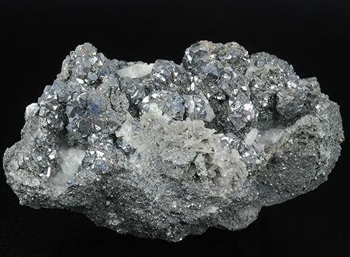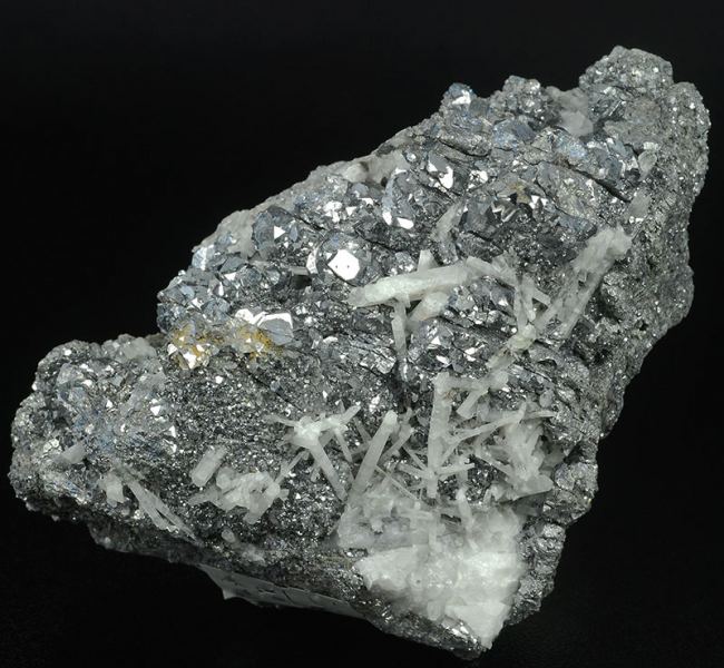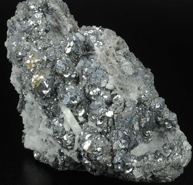 This cluster is made by big, brilliant, pale grey metallic coloured crystals of skutterudite over a matrix of the same mineral. Some milky crystals of quartz are visible over the skutterudites, for an uncommon association. (Gmineral Gallery)Data last checked on 5th Jan 2022 - specimen may no longer be available