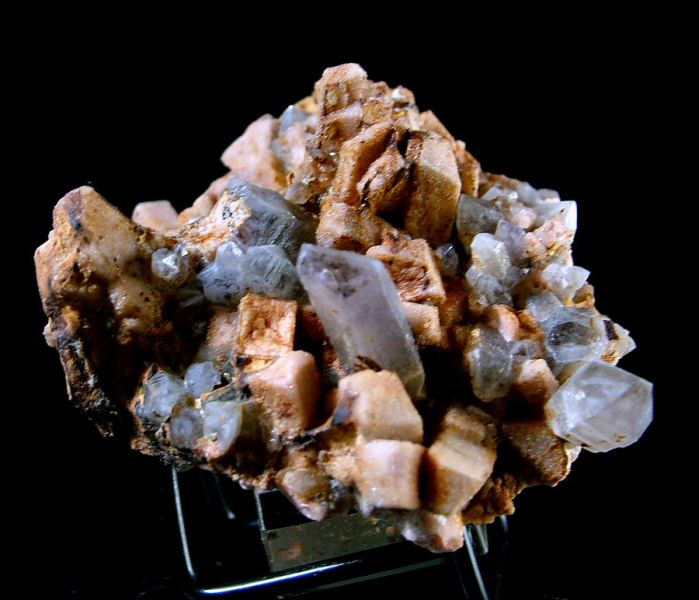 Slightly amethystine Quartz, up to 25 mm, comes with Orthoclase's crystals (13mm). Collected in the 80's, from a classic Italian locality. (Silvia Gallery)Data last checked on 5th Jan 2022 - specimen may no longer be available