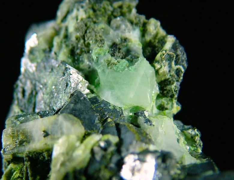 Gersdorffite's crystals are accompanied by green Annabergite. (Silvia Gallery)Data last checked on 5th Jan 2022 - specimen may no longer be available