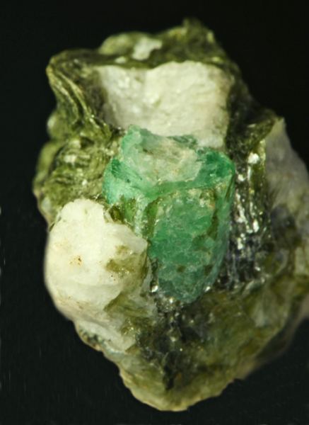 Beryl var. Emerald on Calcite with Pyrite
