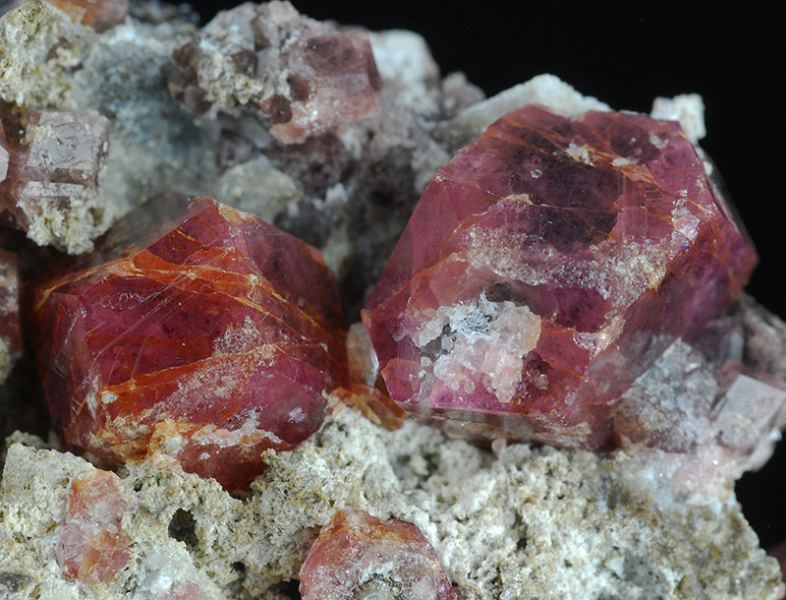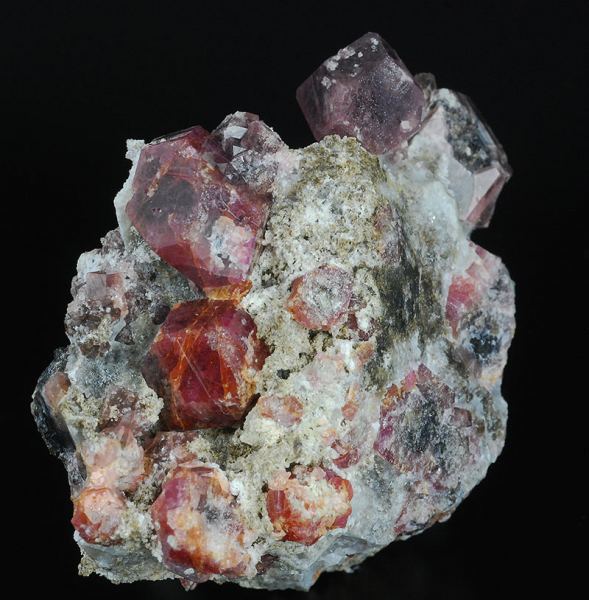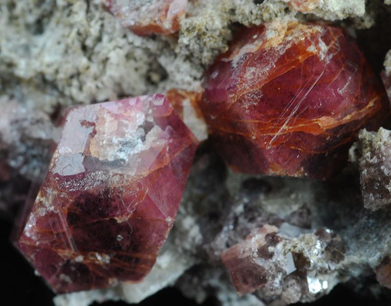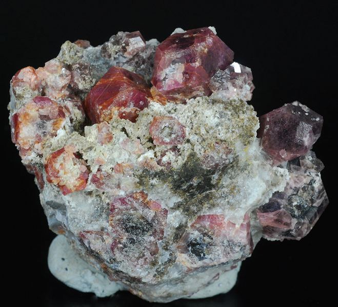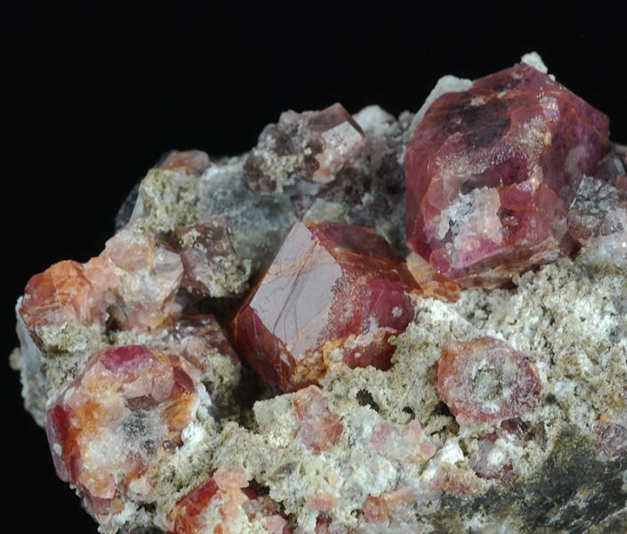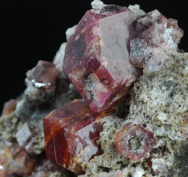 Some big, dark cherry coloured crystals of grossular garnet, with others minor, are stunning over the matrix of this specimen. (Gmineral Gallery)Data last checked on 5th Jan 2022 - specimen may no longer be available