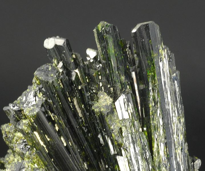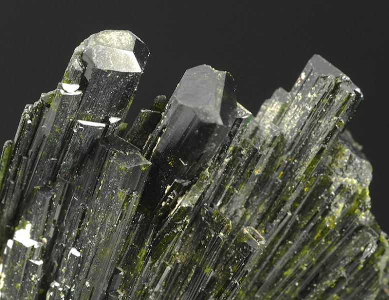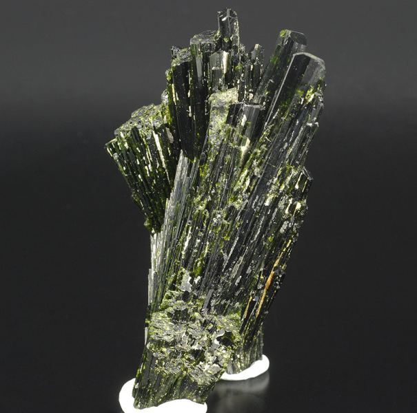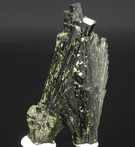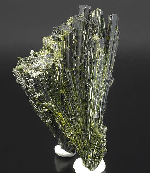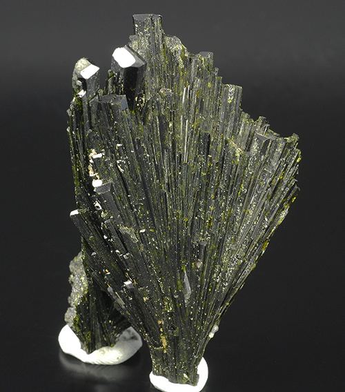 Two elegant intersected fans of highly lustrous deep-olive green crystals of epidote with fantastic flashes of gemmy yellow-green color.This elegant two-sided piece is complete all round. (Gmineral Gallery)Data last checked on 5th Jan 2022 - specimen may no longer be available