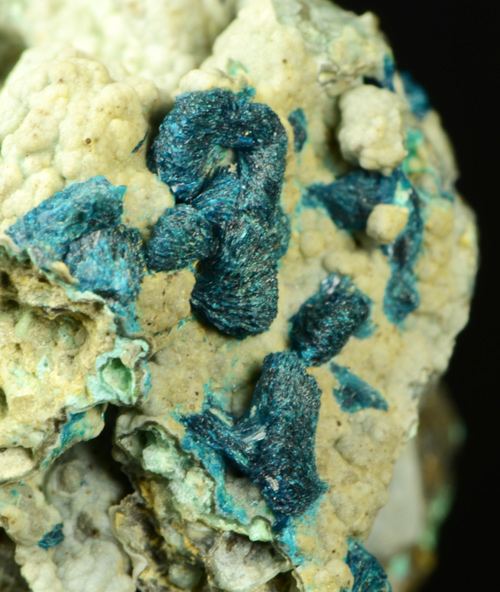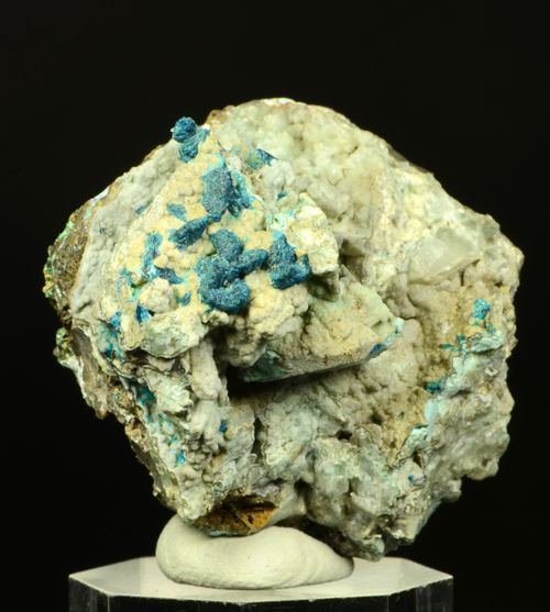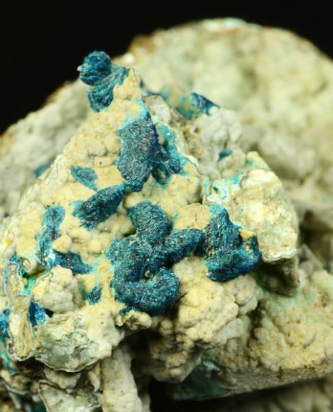 Veszelyite in clean blue rosettes of xls scattered on matrix, from a recent chinese find.Rare specie, known in only few locales in the world. (Ferrero Gallery)Data last checked on 5th Jan 2022 - specimen may no longer be available