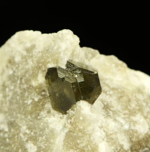 Single cube-octahedral Xl of boracite on massive anidrite matrix. The boracite Xl is deep green in colour, very sharp and with good luster. (Ferrero Gallery)Data last checked on 5th Jan 2022 - specimen may no longer be available