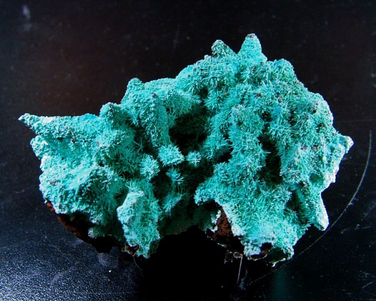 Pseudomorphosis of Chrysocolla on Malachite, that's in its turn pseudomorph on Azurite, on a limonitic matrix. (Silvia Gallery)Data last checked on 5th Jan 2022 - specimen may no longer be available