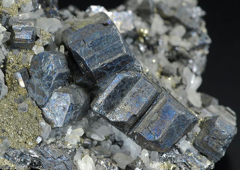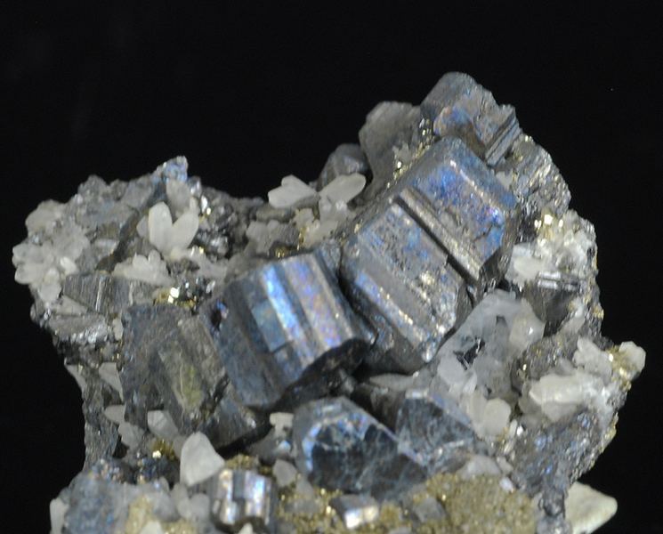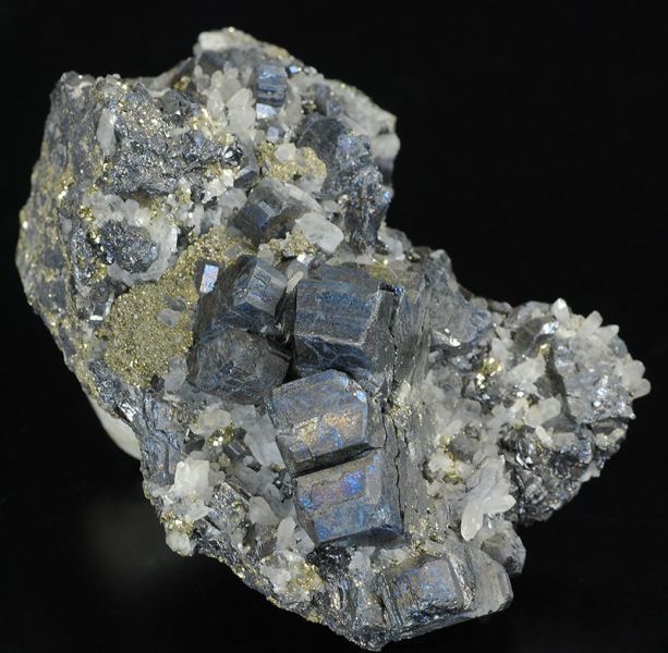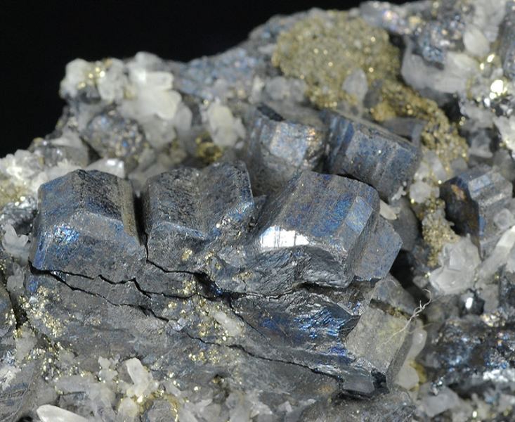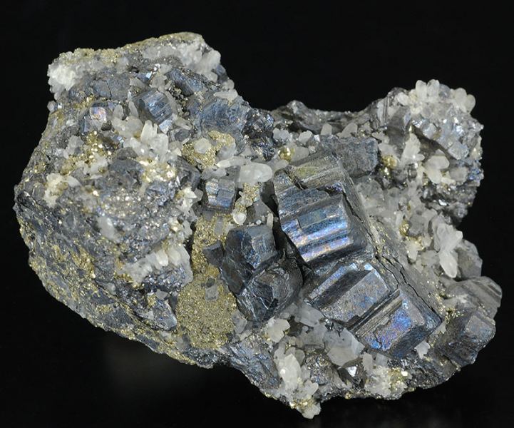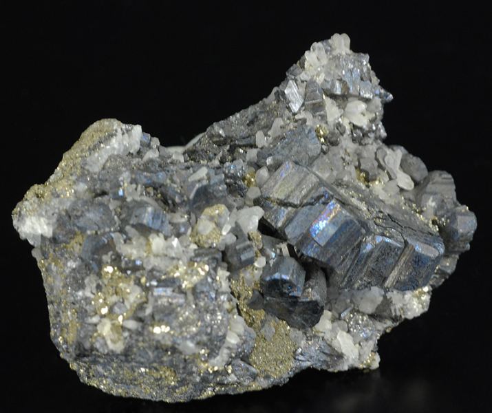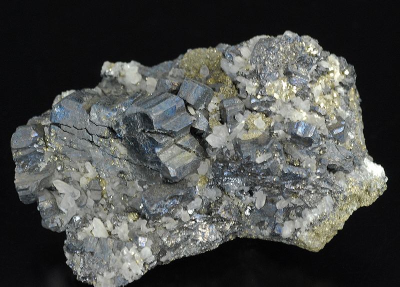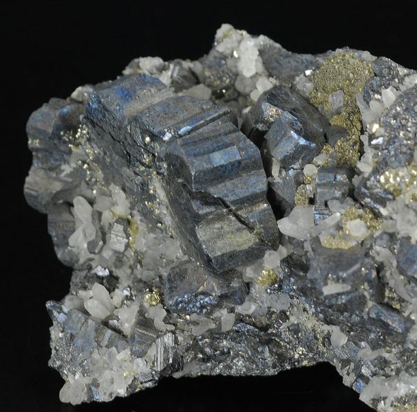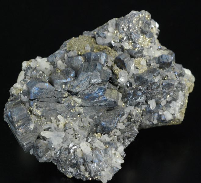 A big 'cogwheel' shaped, dark grey colored crystal of bournonite is in good evidence over the surface of this specimen.Some other minors are visible all around.Some colorless crystals of quartz and goldish crystals of pyrite are s (Gmineral Gallery)Data last checked on 5th Jan 2022 - specimen may no longer be available