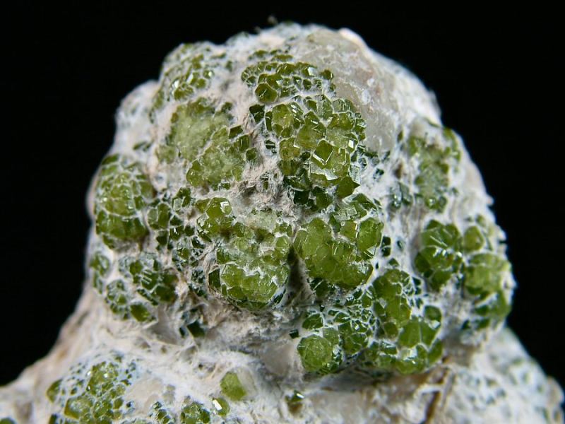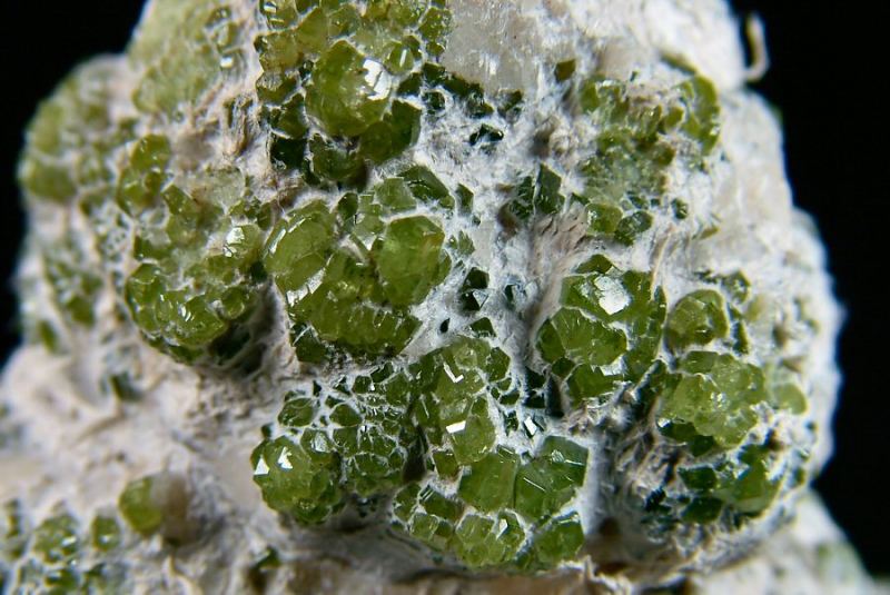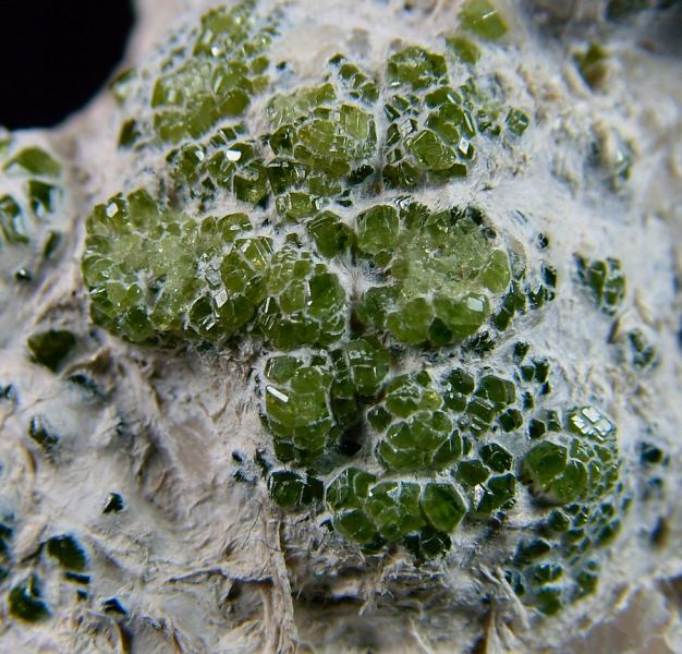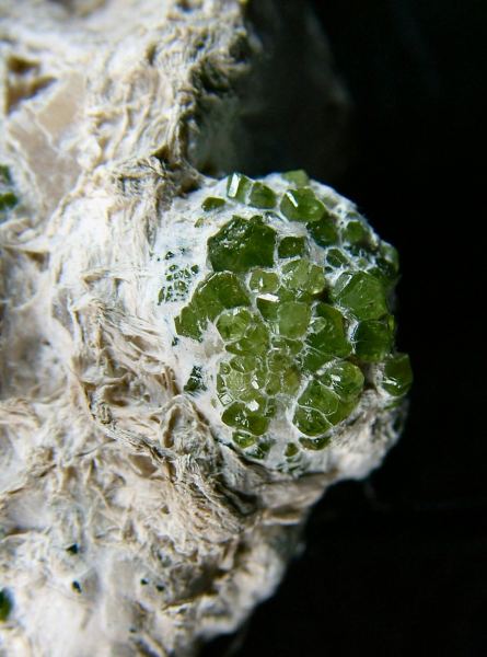 Aggregate of green, well formed, shiny Demantoid's crystals, immersed in the asbestos, known also with the name of Ghianda. A classic of the Italian's mineralogy. (Silvia Gallery)Data last checked on 5th Jan 2022 - specimen may no longer be available