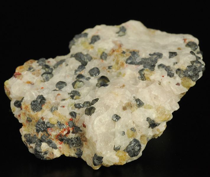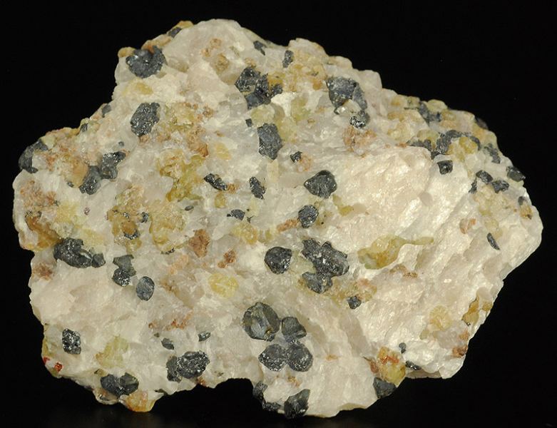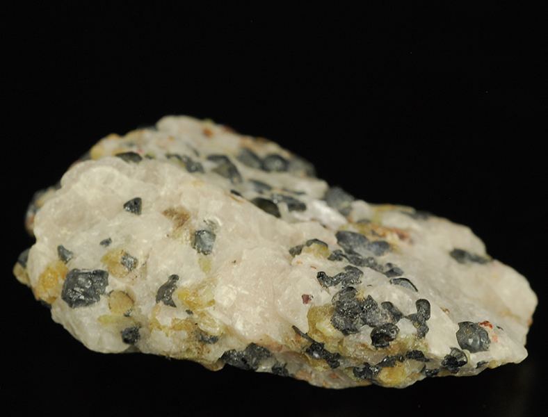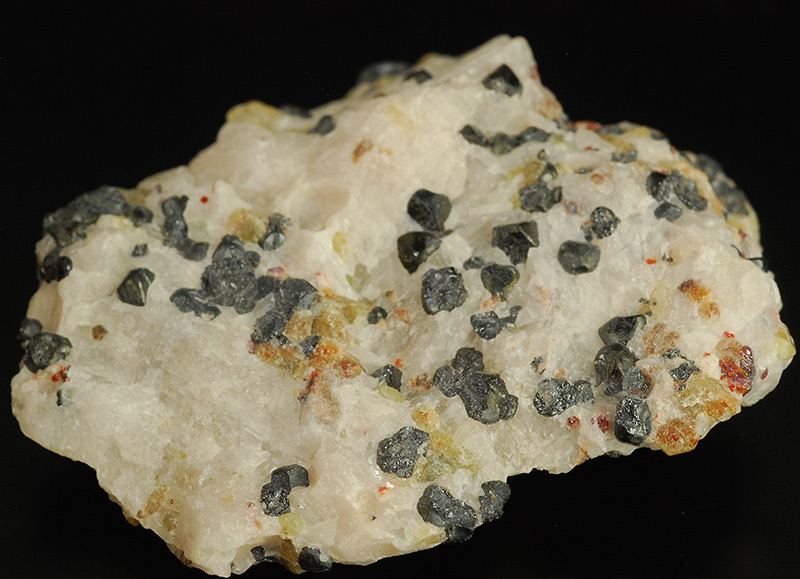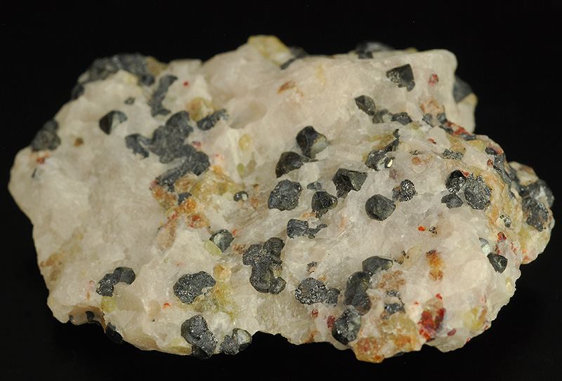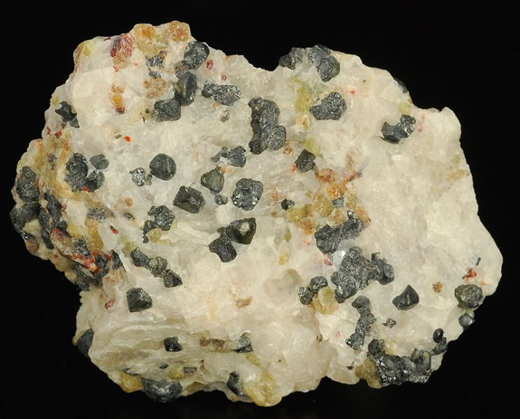 Typical specimen from Frankiln mine !Several black minicrystals of franklinite that are floaded in the bulky withish calcite.Some traces of brick red colored calcite that is partially crystallized.Some areas of yellow-green wille (Gmineral Gallery)Data last checked on 5th Jan 2022 - specimen may no longer be available