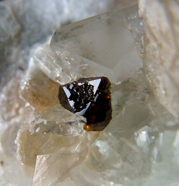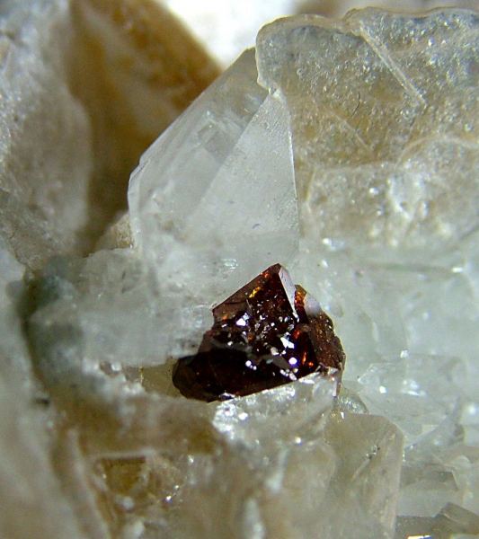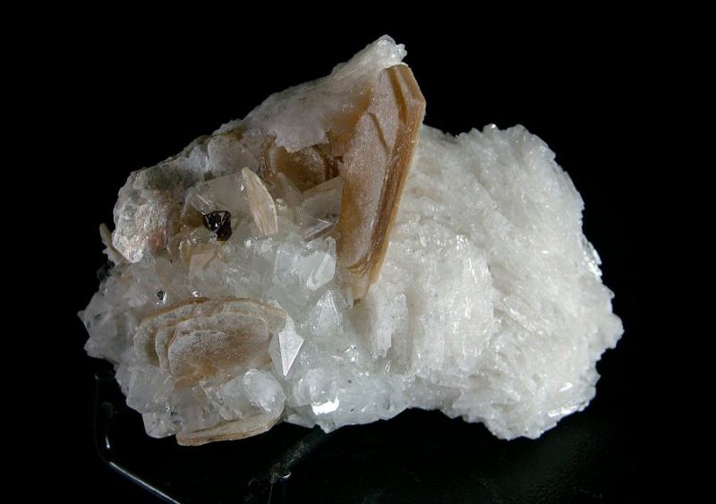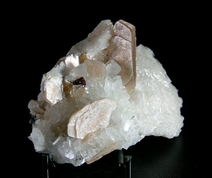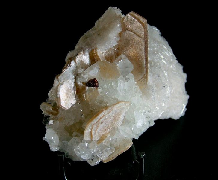 On a carpet of Albite's crystals, dozens of colorless, gemmy and very glossy Topaz crystals up to 12 mm are implanted. There's also Muscovite up to 32 mm and a wonderful 5 mm Fluornatromicrolite's crystal, extremely shiny and well form (Silvia Gallery)Data last checked on 5th Jan 2022 - specimen may no longer be available
