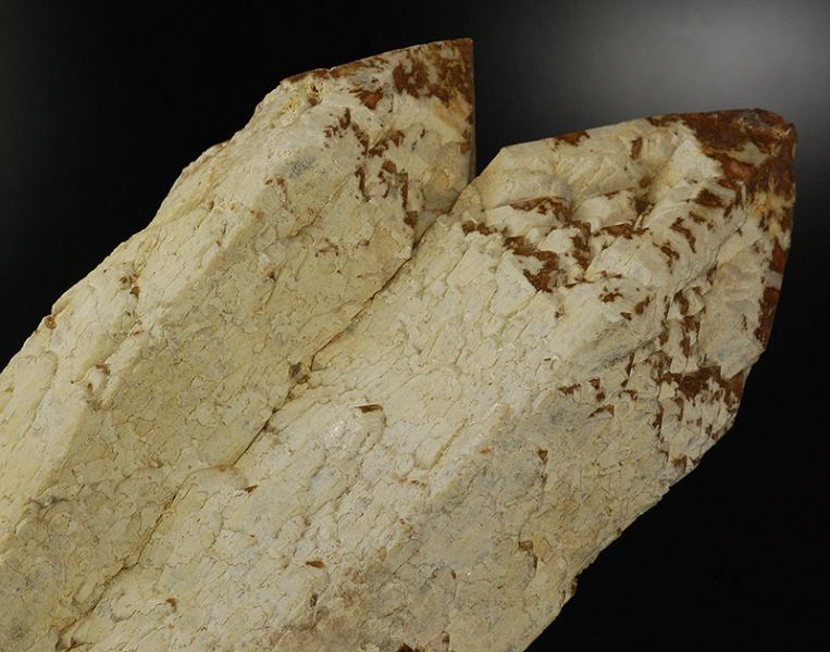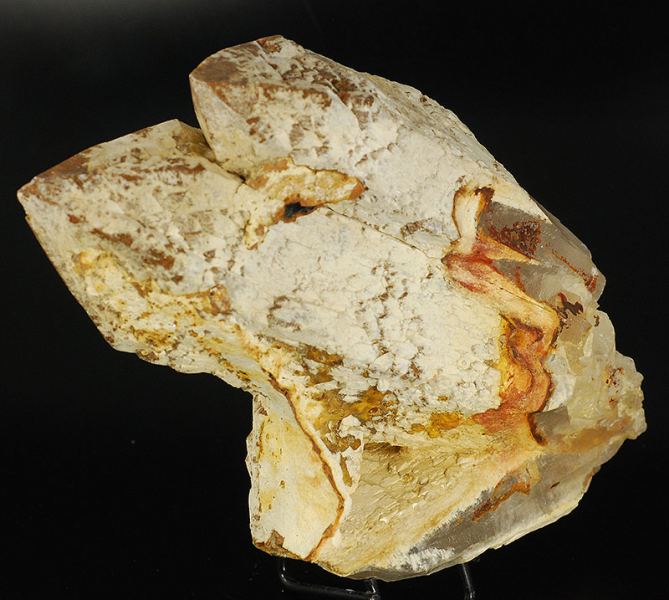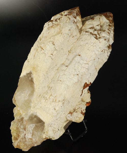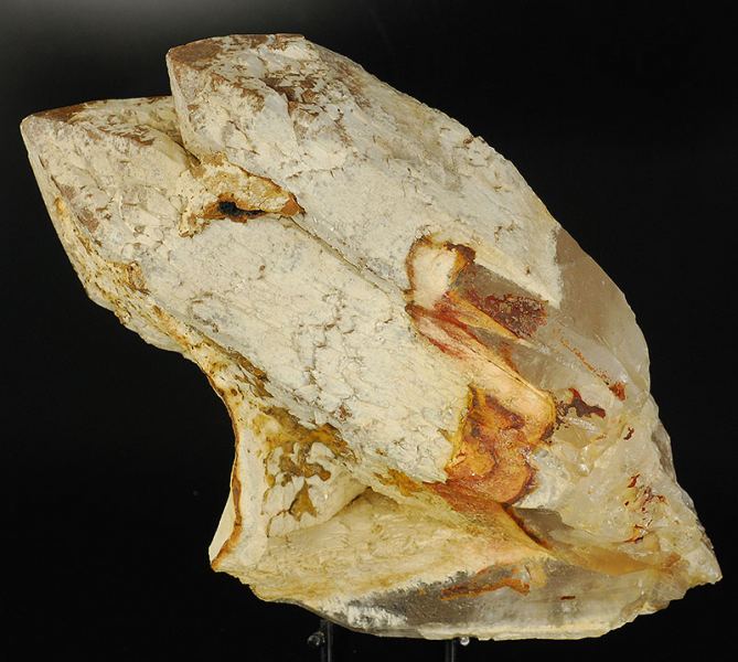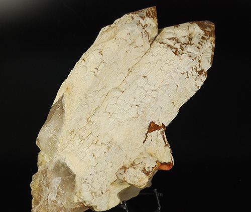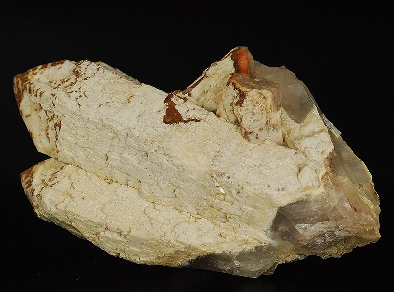 Two long crystals of quartz have the 'fenster' top, with some windows and are partially growth as an 'artichoke', for a curious effect.Their surface is partially pseudomorphed in ortochlase.It becomes from an old collection and (Gmineral Gallery)Data last checked on 5th Jan 2022 - specimen may no longer be available