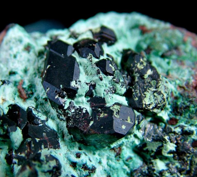 Dark red Cuprite's crystals make a nice contrast with the Chrysocolla, from which they emerge. Ex Cirina collection. (Silvia Gallery)Data last checked on 5th Jan 2022 - specimen may no longer be available