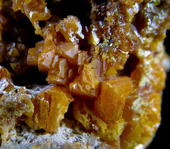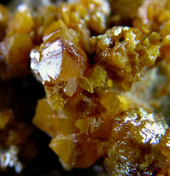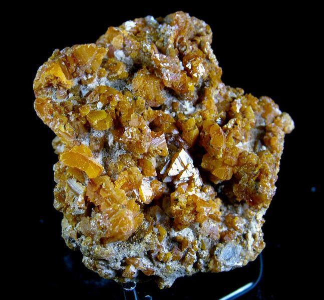 A carpet of orange crystals cover all the sample. The crystals are octahedral and in some cases with the typical pyramidal bifurcation, characteristic of this locality. (Silvia Gallery)Data last checked on 5th Jan 2022 - specimen may no longer be available