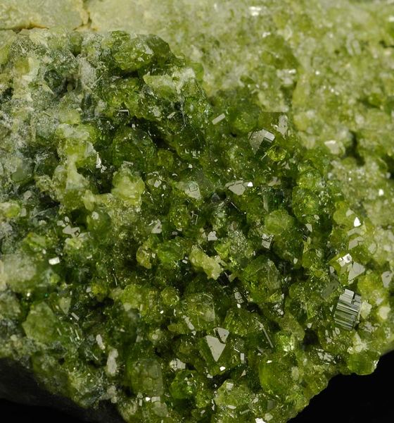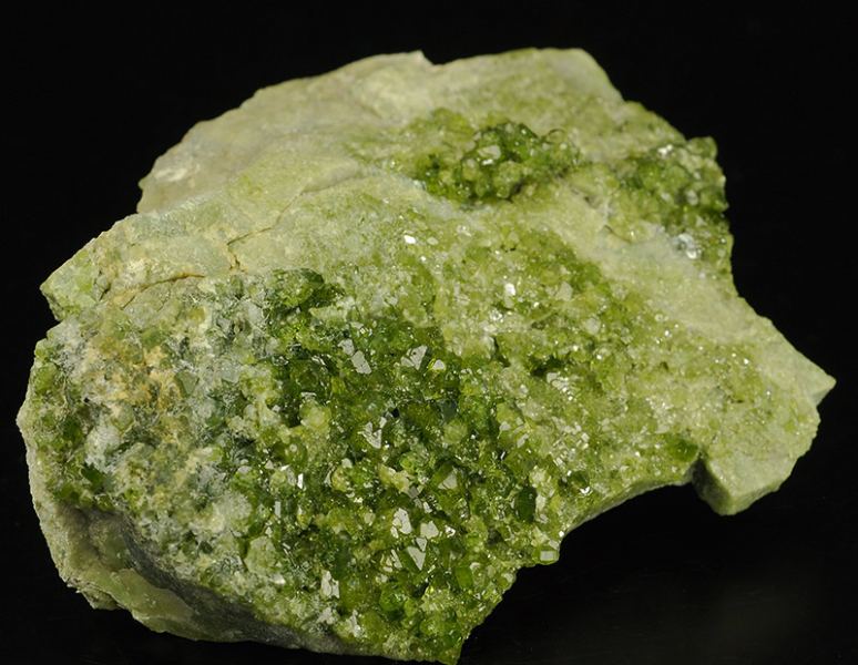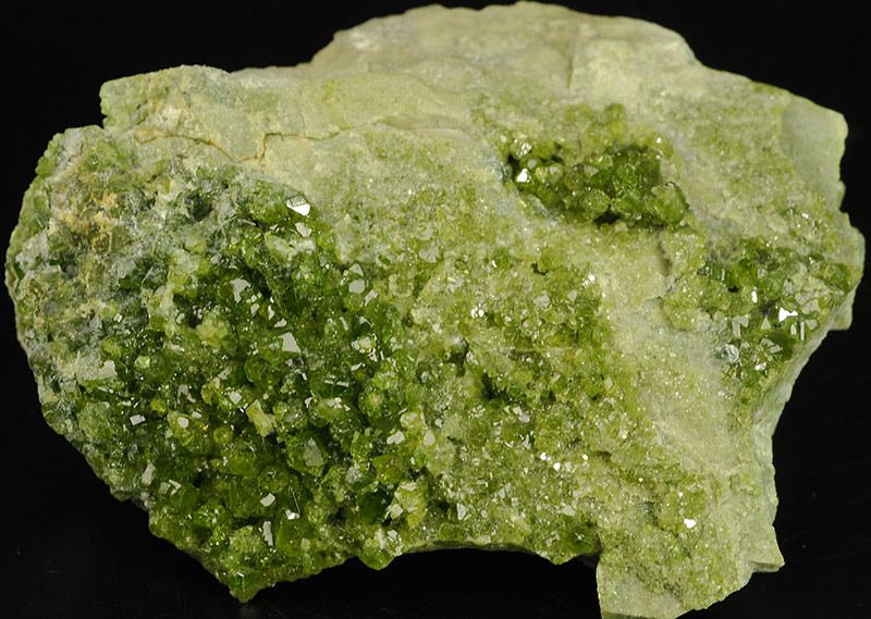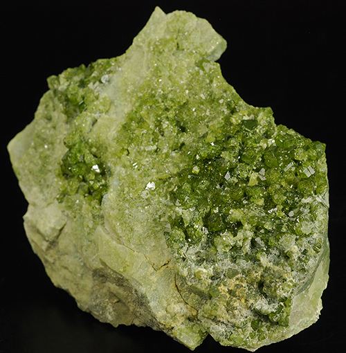Several small and brilliant crystals of vesuvianite are seeded over the surface of this specimen.The green color is due because they are rich in chromium.From a found of almost 30 years ago. (Gmineral Gallery)Data last checked on 5th Jan 2022 - specimen may no longer be available