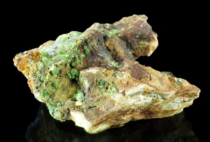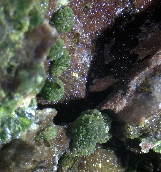Olivenite with Malachite, Pseudomalachite, Goethite, Quartz