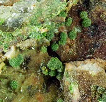 Nice bright green arthurite xls with darker olivenite xls. (Rolando Gallery)Data last checked on 5th Jan 2022 - specimen may no longer be available