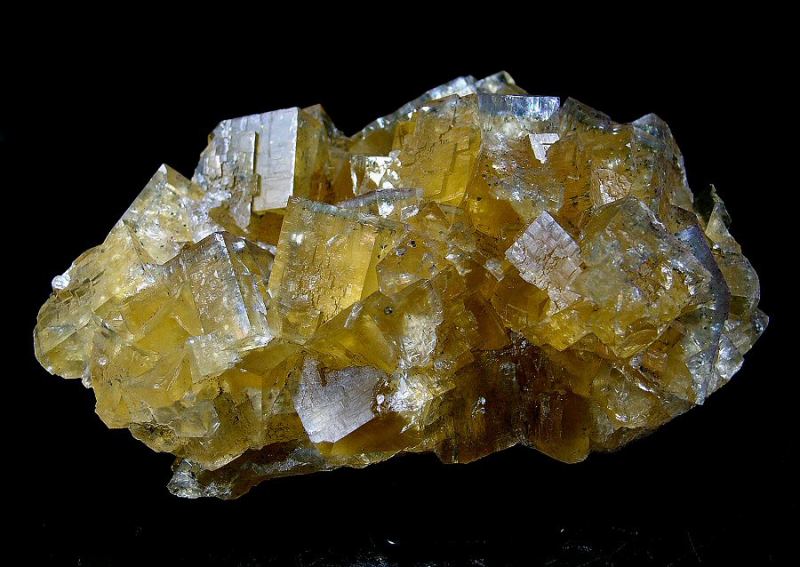 Wonderful sample of Fluorite, with a golden yellow color and azure reflexes. The crystals are shinym twinned, well articulated on the matrix. In excellent conditions. (Silvia Gallery)Data last checked on 5th Jan 2022 - specimen may no longer be available