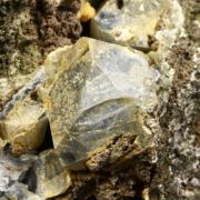 Specimen hosting three well defined, yellow xls of Grossular, well exposed on matrix from the classic occurences in the central Italy.Former Guglielmini collection, with label. (Ferrero Gallery)Data last checked on 5th Jan 2022 - specimen may no longer be available