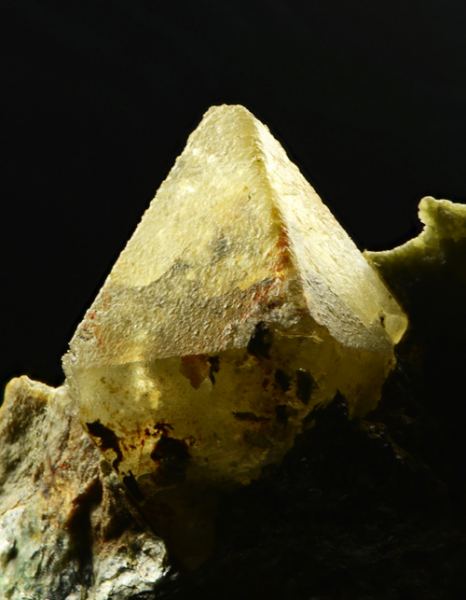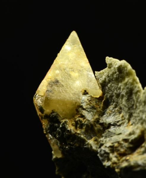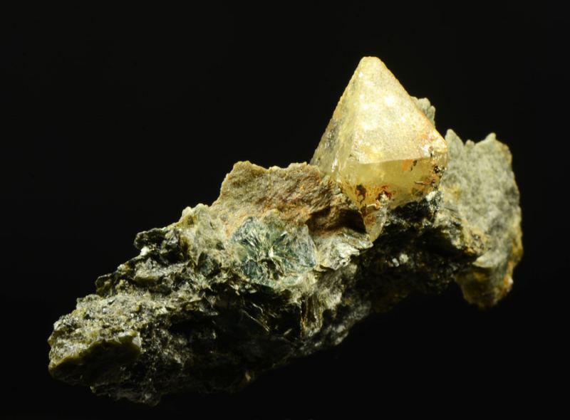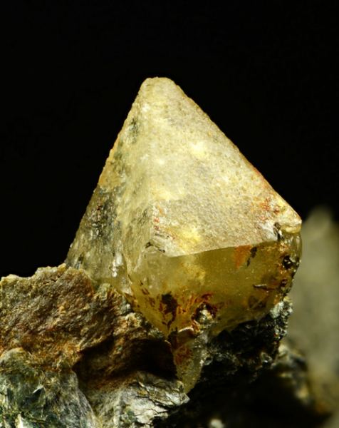 Textbook bi-pyramidal xl of Scheelite set on a matrix made of chlorite and talc.The specimen can be dated to the first half of 1900.Classic italian specimen! (Ferrero Gallery)Data last checked on 5th Jan 2022 - specimen may no longer be available