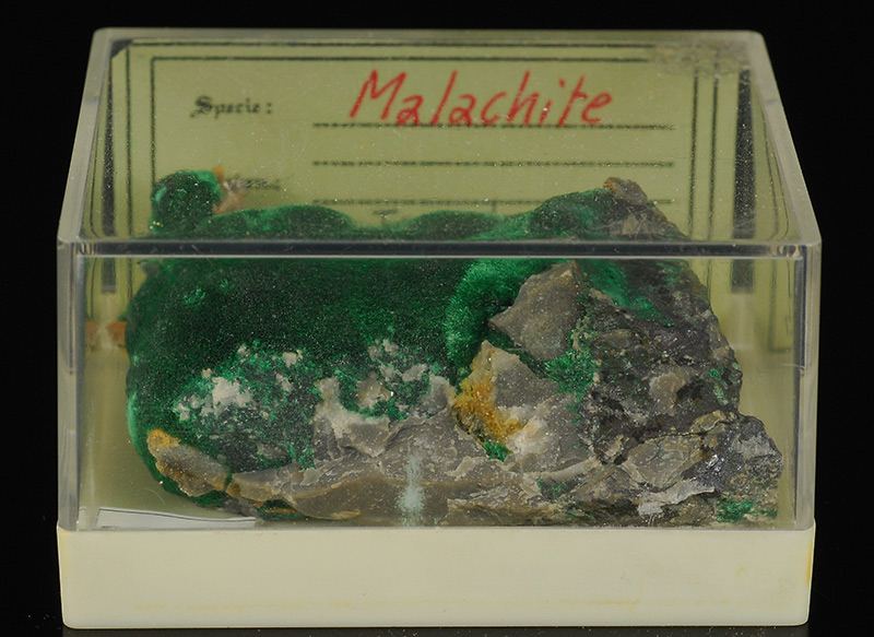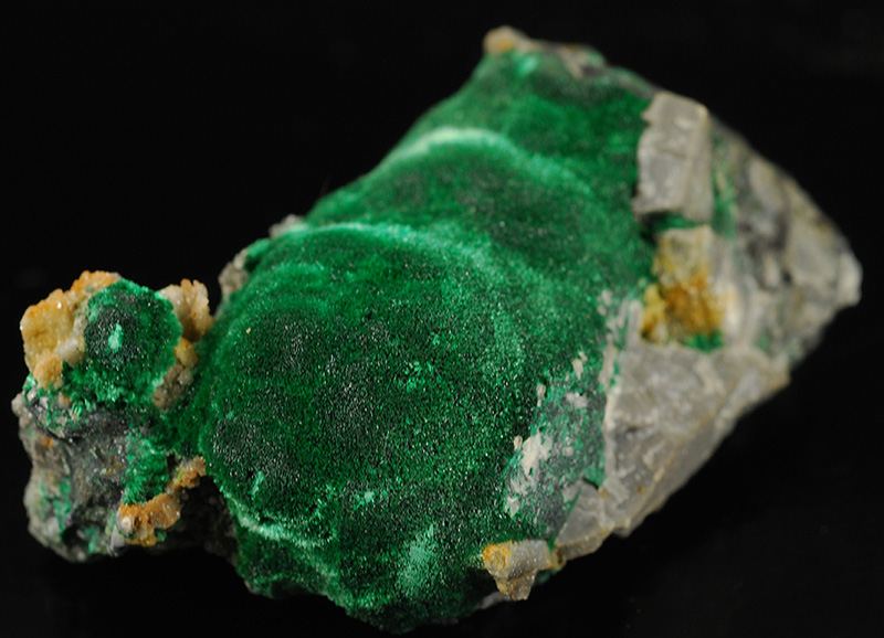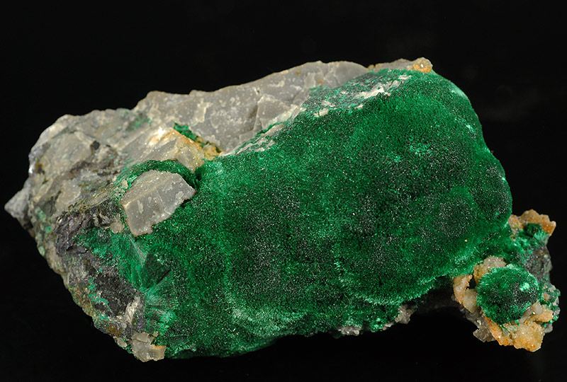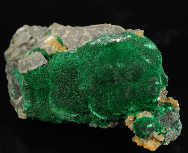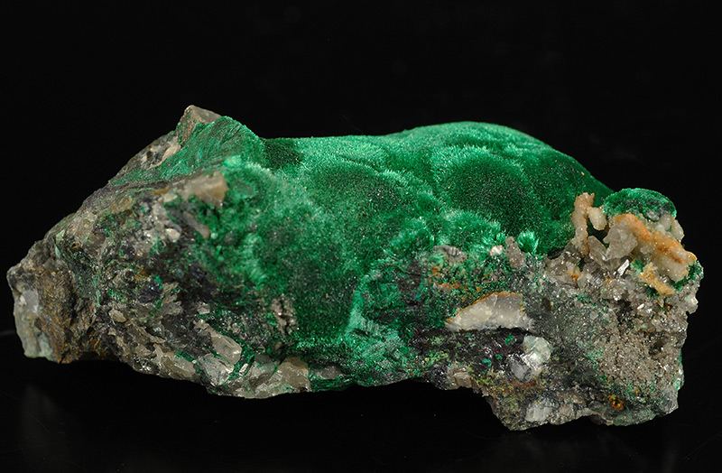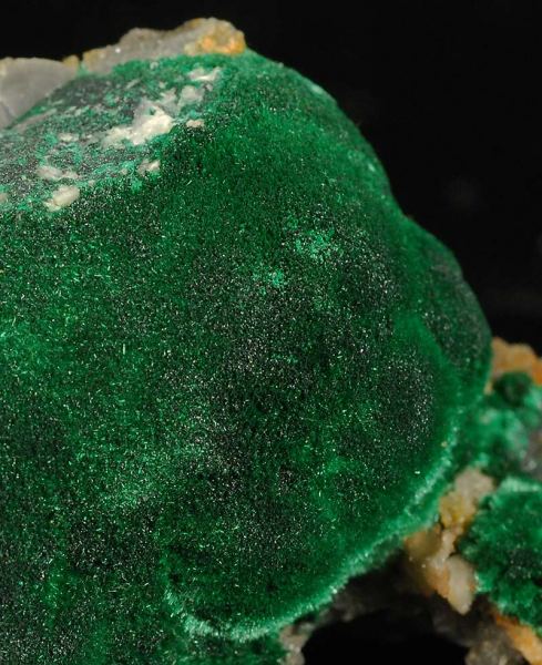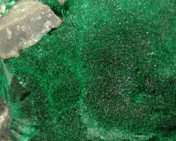 A carpet of soft felted thin crystals of malachite covers the surface of this specimen.The color is dark green: when you move the specimen under a light, it changes to pale, it seems a meadow of grass stirred by the wind. The pictu (Gmineral Gallery)Data last checked on 5th Jan 2022 - specimen may no longer be available