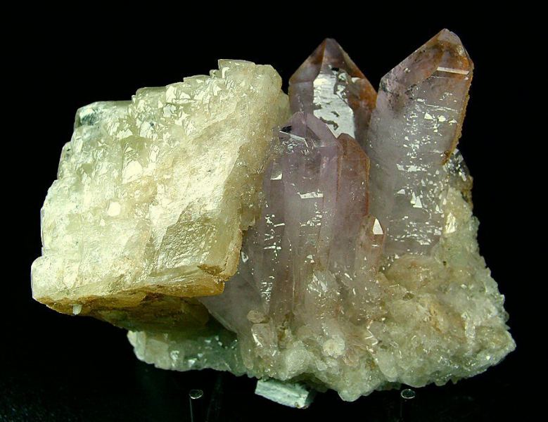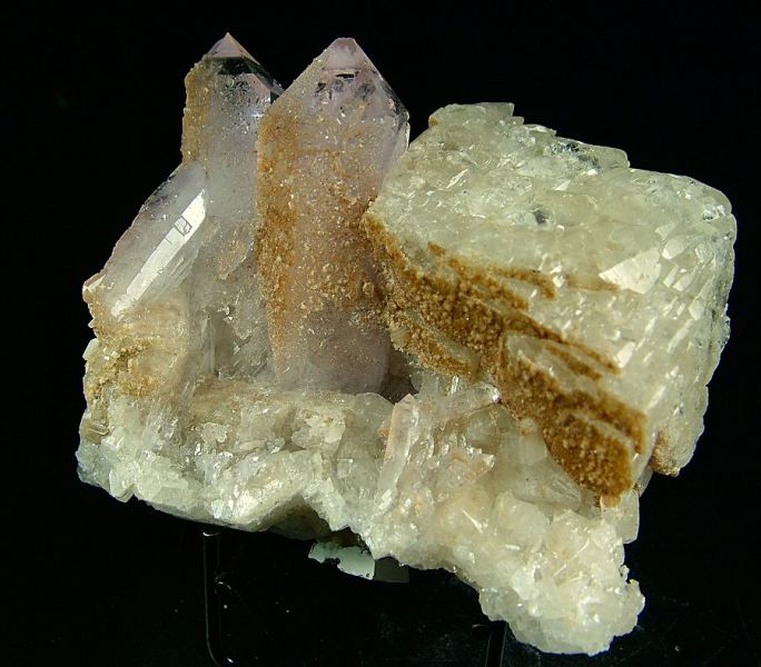 Wonderful group of Amethyst's crystals, very shiny and translucent, with a big Calcite's crystal (50 mm) and small Apophyllite's crystals (4 mm). A classic for the locality. The Calcite is slightly damaged, but in a barely visible way. (Silvia Gallery)Data last checked on 5th Jan 2022 - specimen may no longer be available