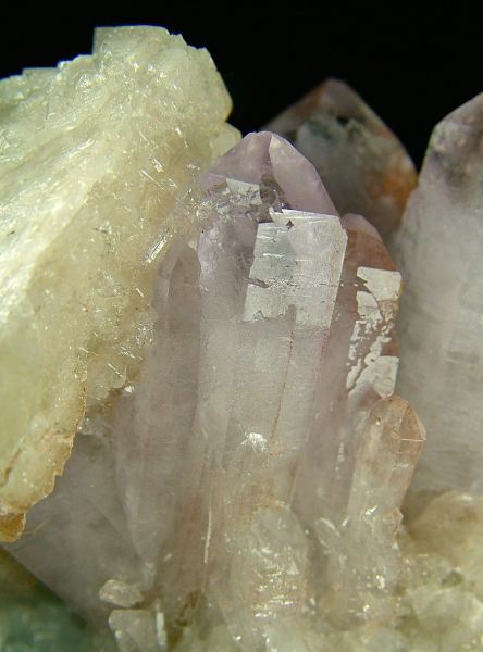 Hydroxyapophyllite-(K) with Calcite, Hubeite and Quartz