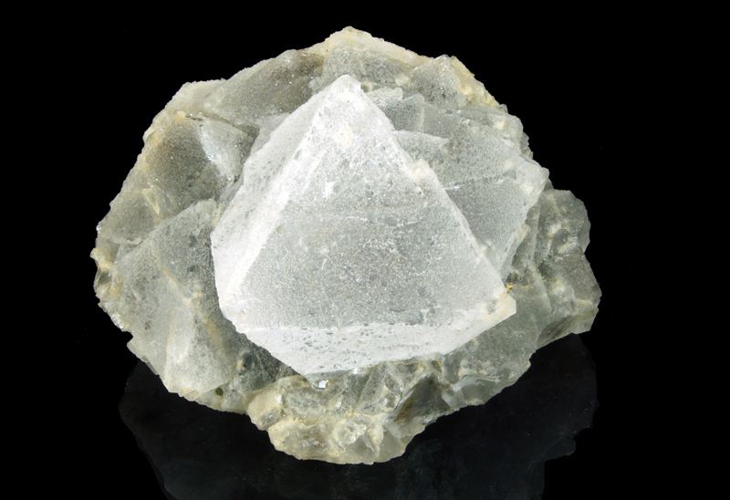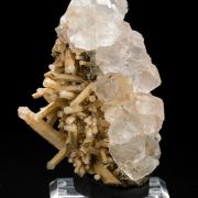 Nice combo offering a small Quartz crystal protuding out from a large greenish Fluorite octohedron. The crystals faces looks a kind of frostened. Very charming. (Rolando Gallery)Data last checked on 5th Jan 2022 - specimen may no longer be available