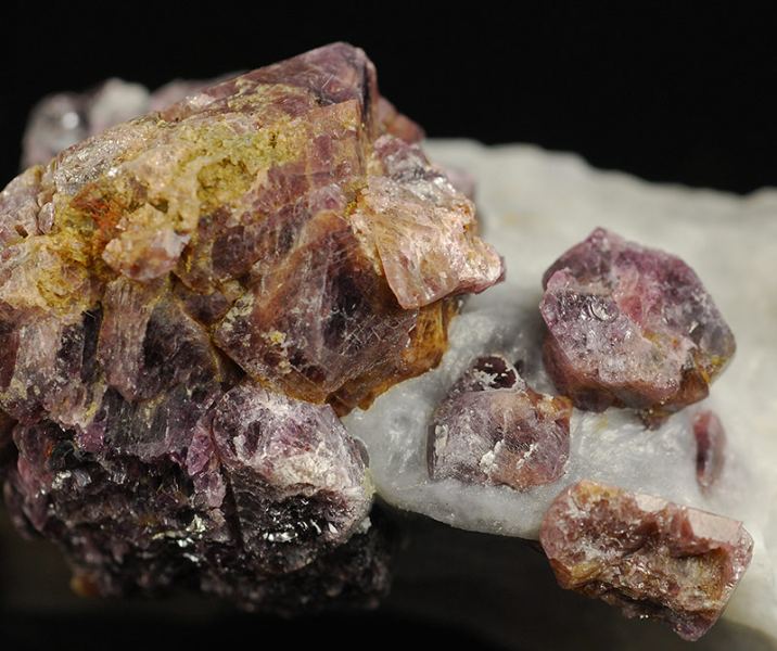 Big dark violet colored crystals of spinel are in good evidence over the whitish matrix. The specimen was etched to eliminate the calcite that covered the crystals. (Gmineral Gallery)Data last checked on 5th Jan 2022 - specimen may no longer be available