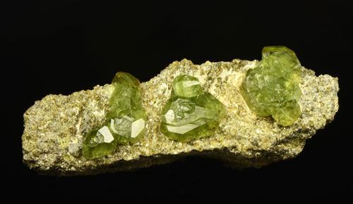 Fine cluster of lustruous, well defined, green crystals of Demantoid scattered on matrix.From the findings of some years ago at an almost unknown locality in Madagascar that hit the market producing specimens of worldclass quality fo (Ferrero Gallery)Data last checked on 5th Jan 2022 - specimen may no longer be available