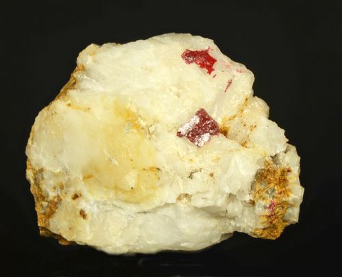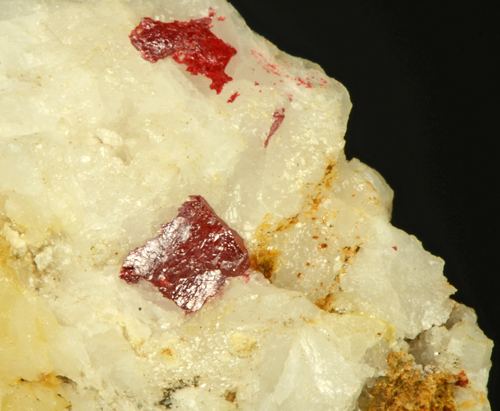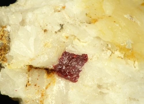 In a small vug on a chunk of white quarzite matrix, a small red cinnabar crystal with sharp faces can be noticed. (Ferrero Gallery)Data last checked on 5th Jan 2022 - specimen may no longer be available