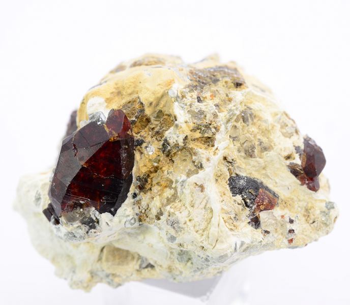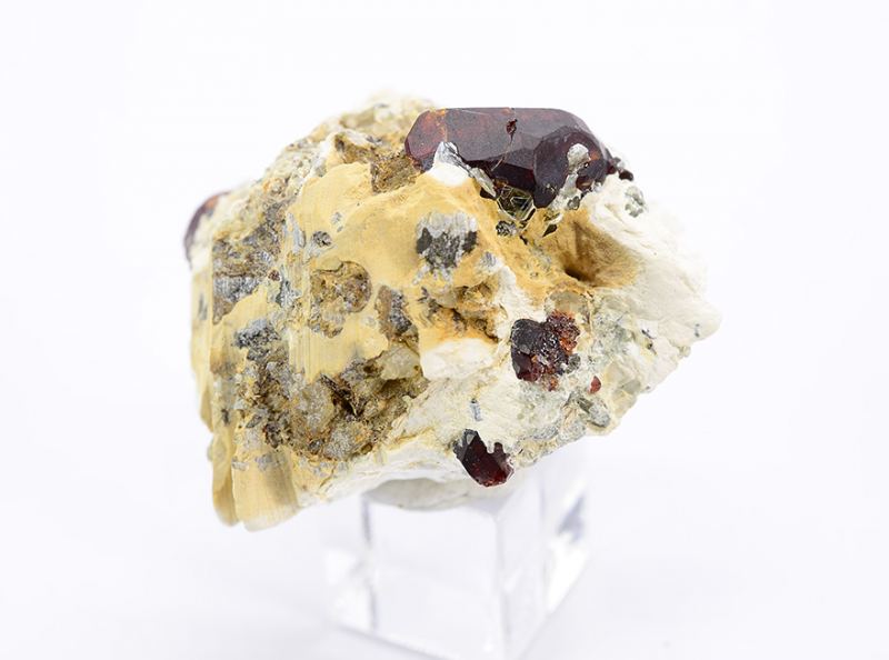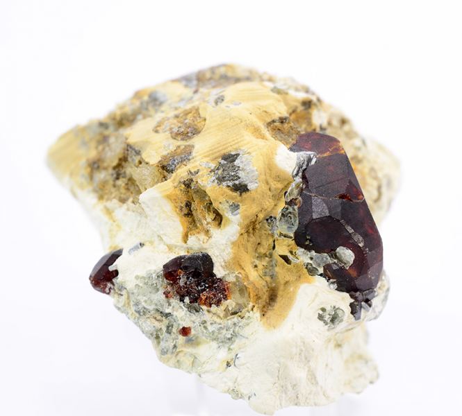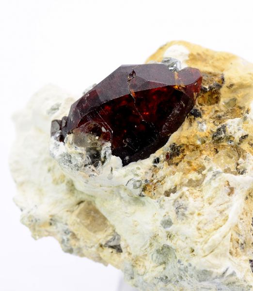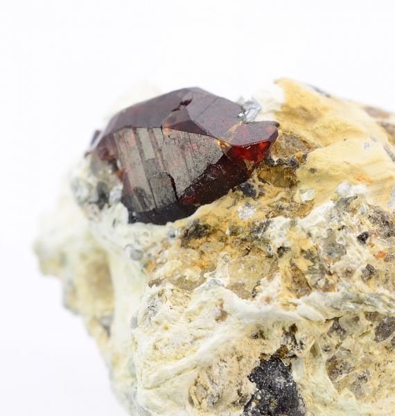 Dark red complex terminated crystal of Chondrodite 1,3 cm tall on matrix. (Minservice Gallery)Data last checked on 5th Jan 2022 - specimen may no longer be available
