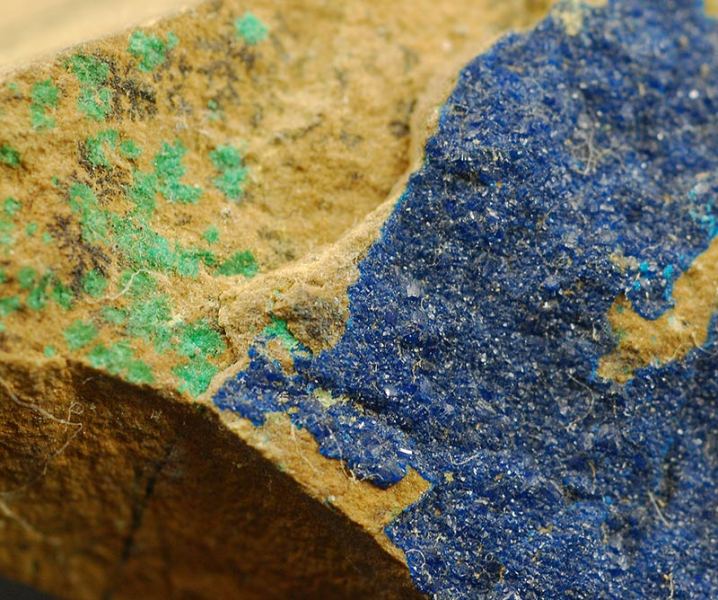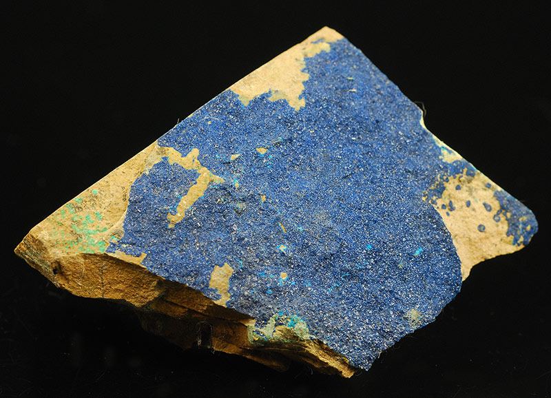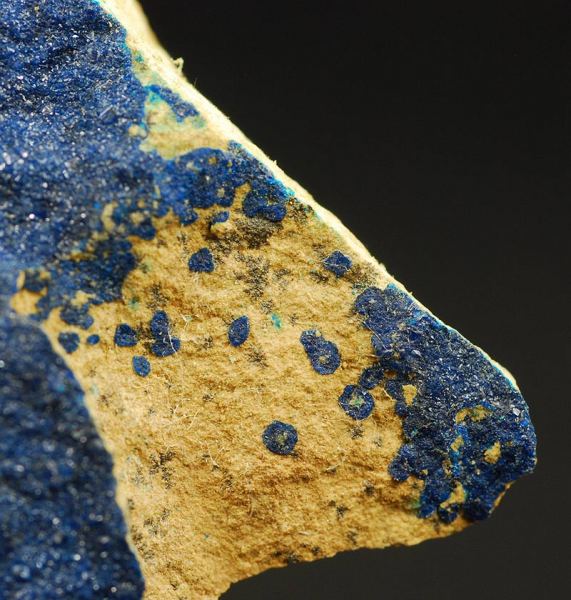 A crust of spherical-shaped, dark blue colored crystals of cornetite covers the surface of this specimen. (Gmineral Gallery)Data last checked on 5th Jan 2022 - specimen may no longer be available