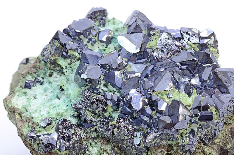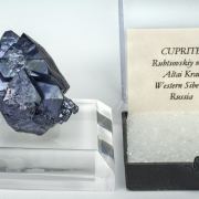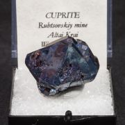 Several octahedrons of bright dark red cuprite are spread all over a carpet of pale blue chrysocholla.From the famous Mashamba West mine. (Minservice Gallery)Data last checked on 5th Jan 2022 - specimen may no longer be available