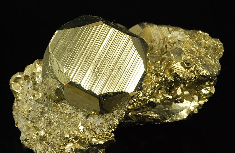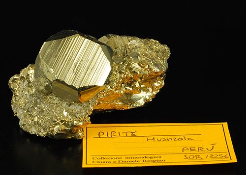 Big, perfect, brilliant and golden colored crystals of pyrite are stunning over the matrix of this specimen, that is made by pyrite too.Ex Daniele Respino collection with the original label. (Gmineral Gallery)Data last checked on 5th Jan 2022 - specimen may no longer be available