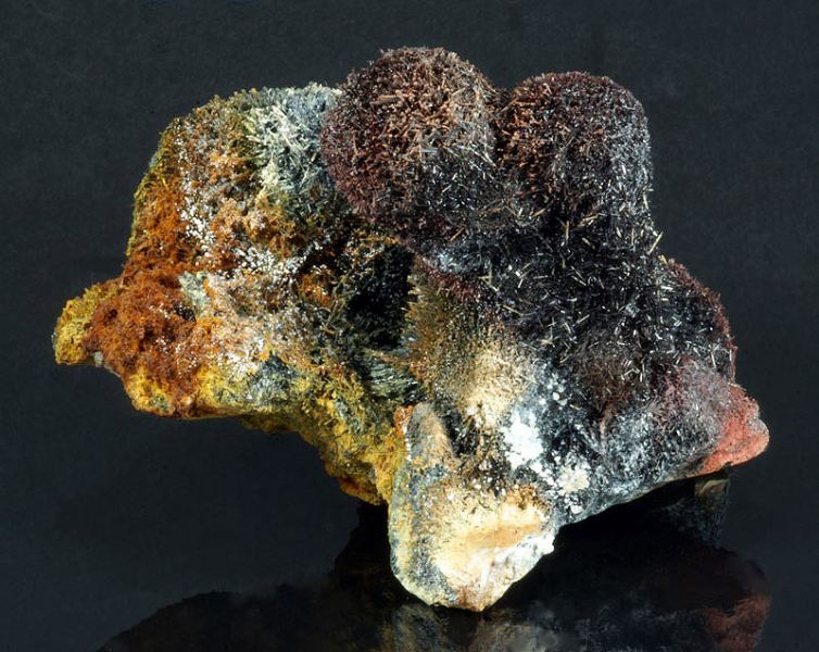 Tourmaline (Group) with Hematite (variety iron rose), Quartz and Feldspar