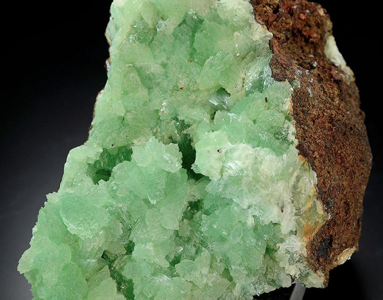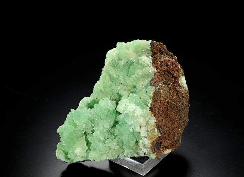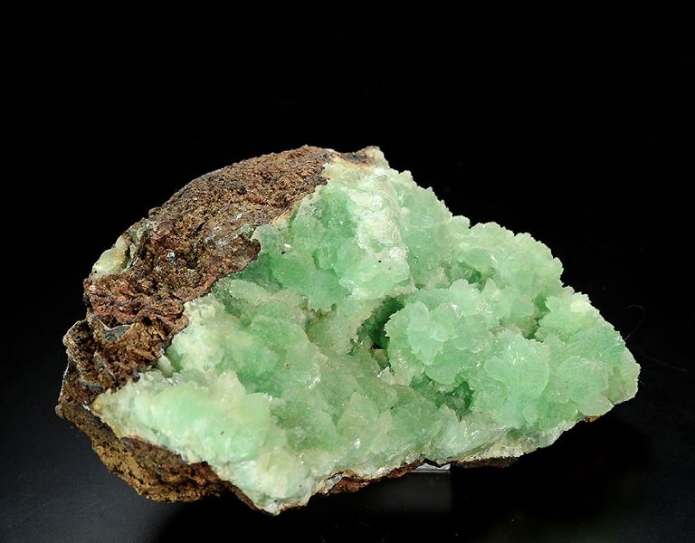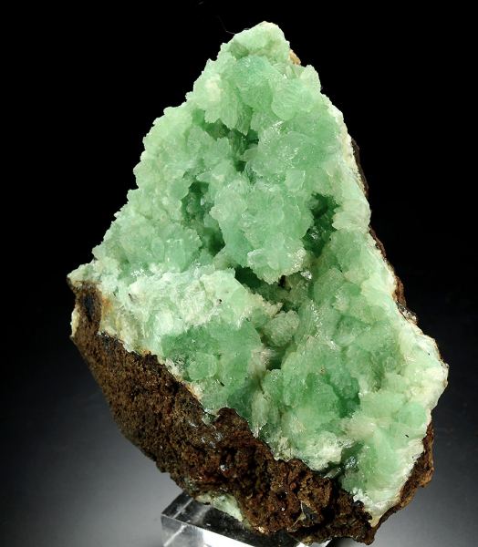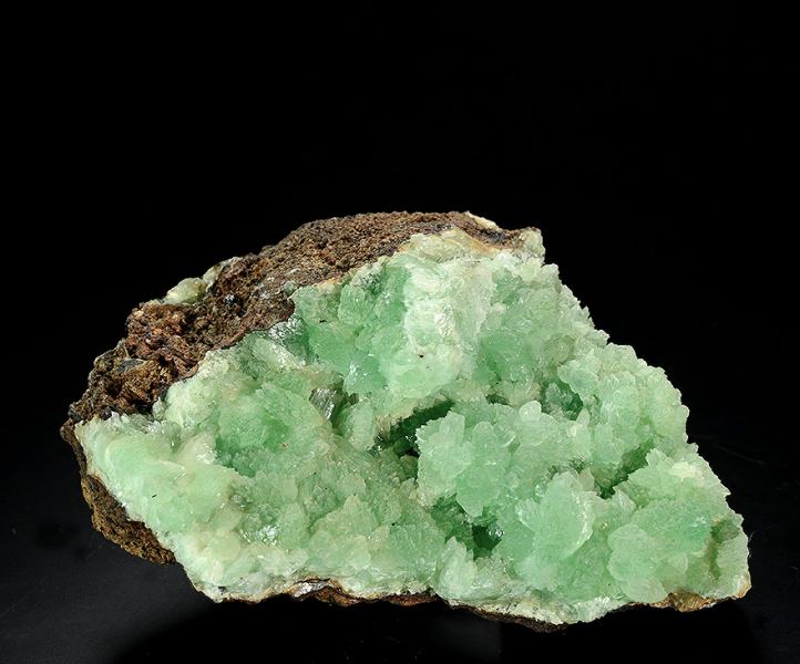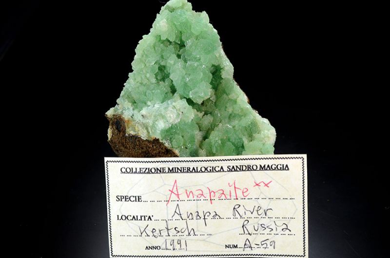Cluster of apple green Anapaite xls richly set on limonitic matrix from the type locality. Ex Sandro Maggia coll. (Minservice Gallery)Data last checked on 5th Jan 2022 - specimen may no longer be available