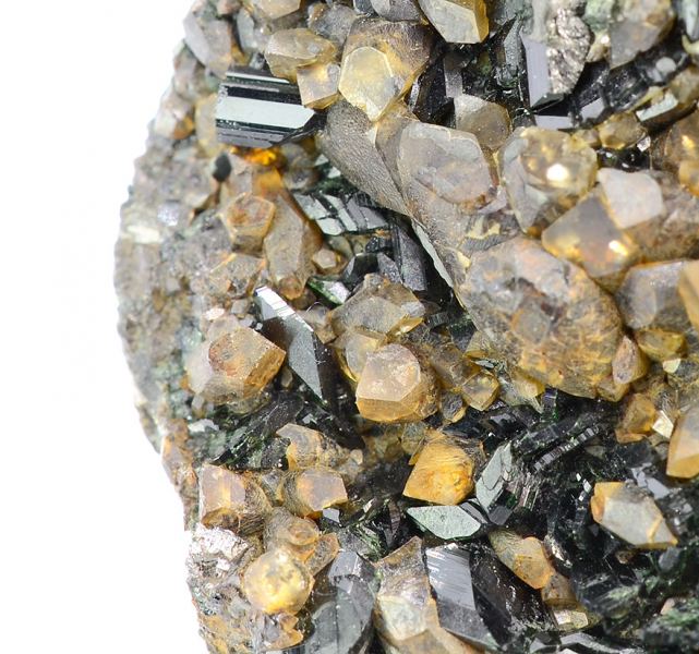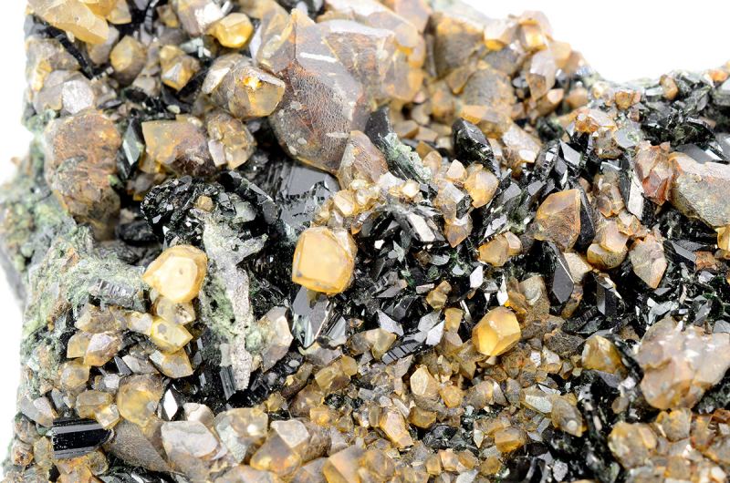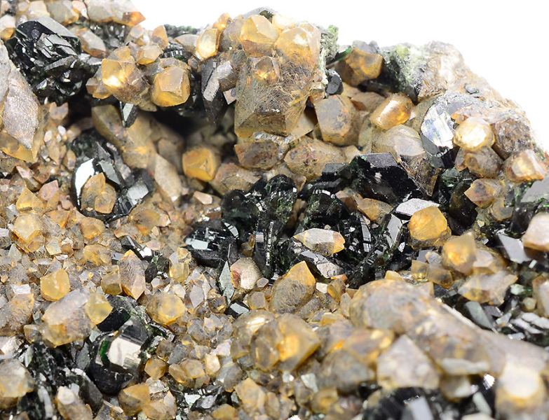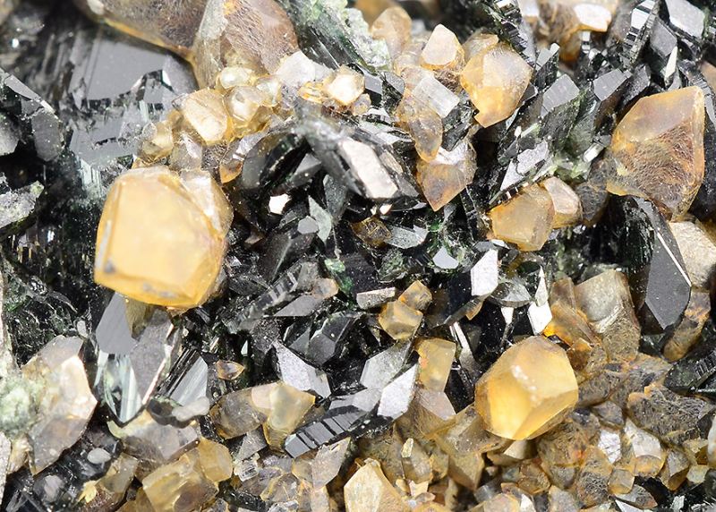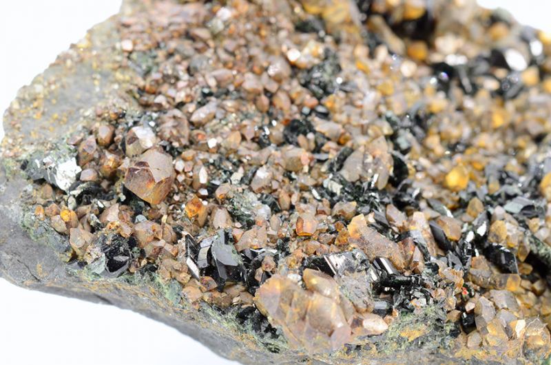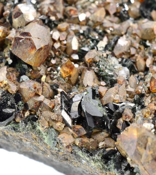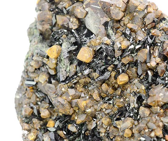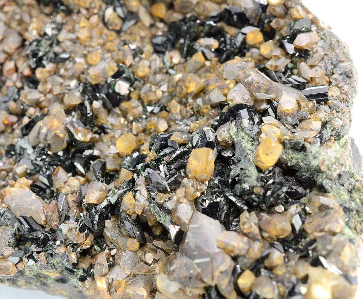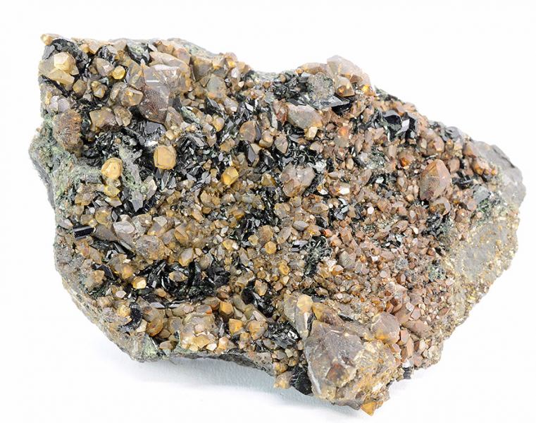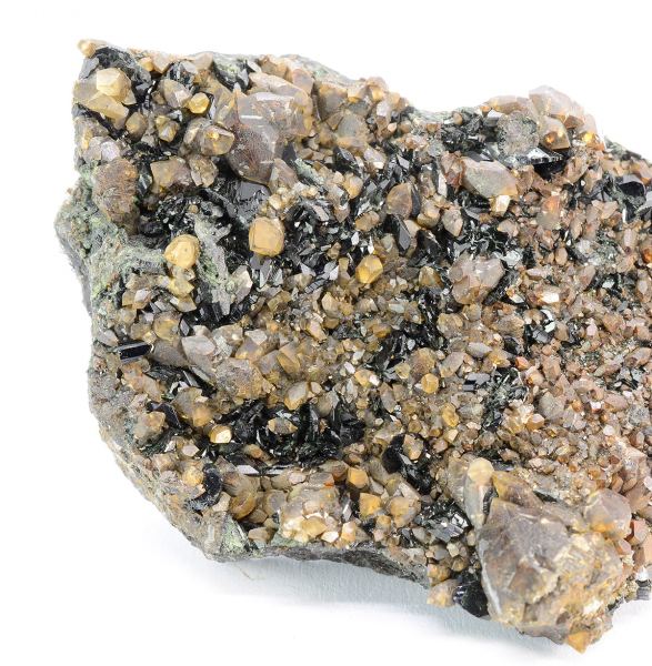 Several very lustrous deep blue-green crystals up to 3.5 mm of this rare phosphate are spread all over the surface of this specimen.Several semitransparent brown coloured crystals of siderite are spread in association.Ex Francesco (Minservice GalleryData last checked on 5th Jan 2022 - specimen may no longer be available