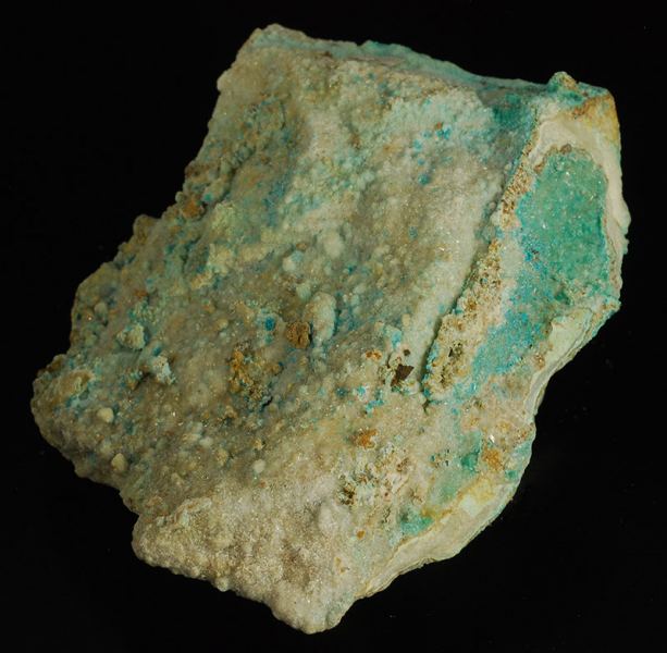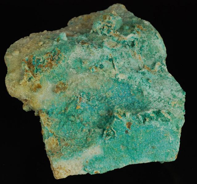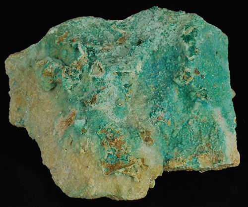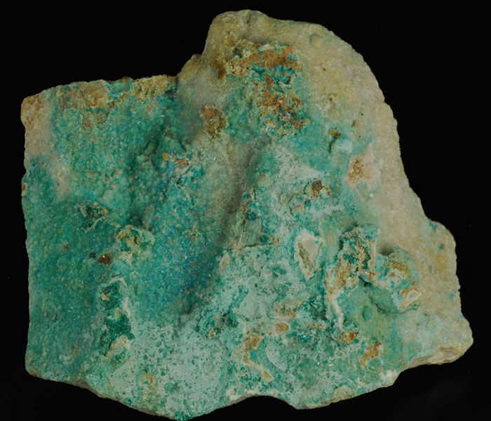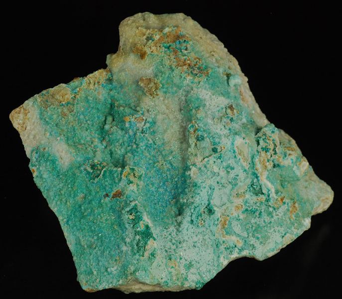 The surface of this specimen is completely covered by azur crystals of ktenasite.The ktenasite is partially covered by transparent minicrystals of gypse. (Gmineral Gallery)Data last checked on 5th Jan 2022 - specimen may no longer be available