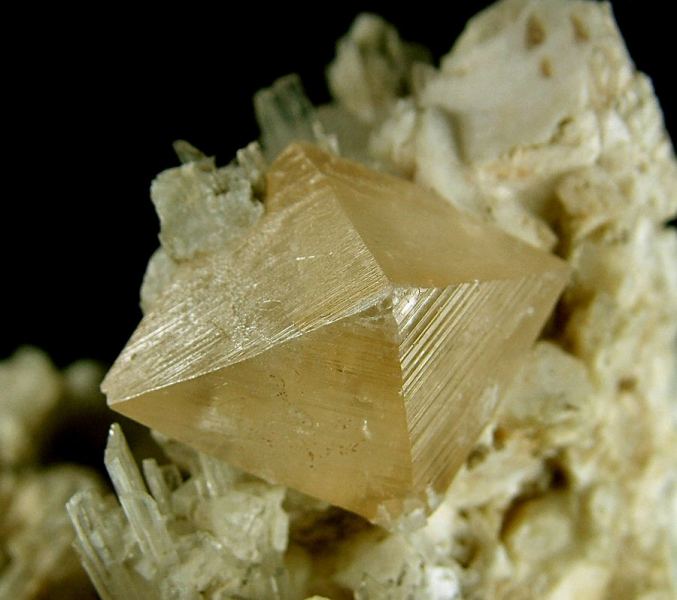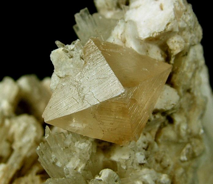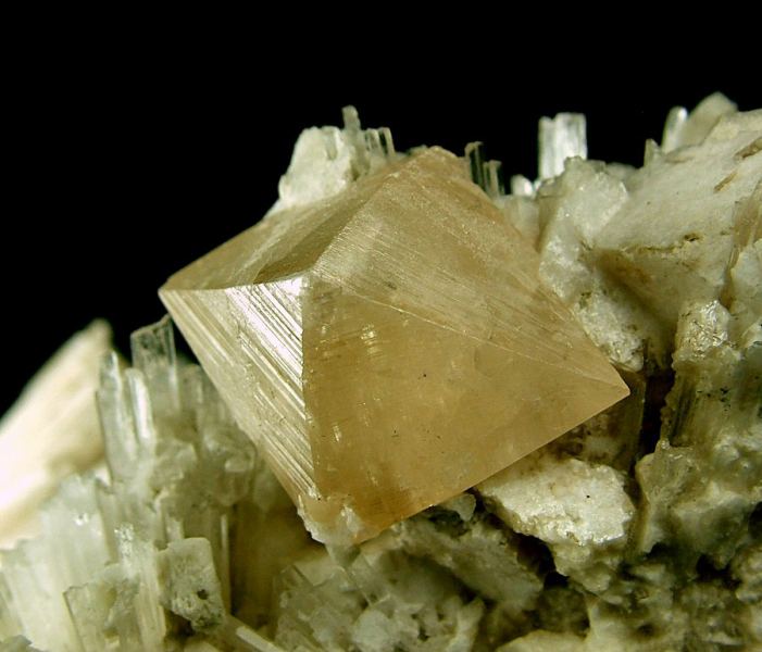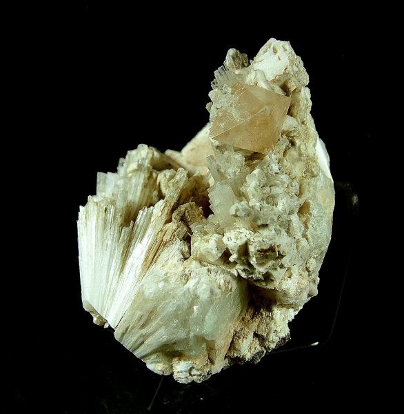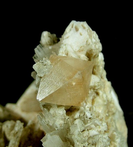 A nice, shiny and well formed 23 mm Powellite's crystal is accompanied by acicular Scolecite and by Apophyllite's crystals up to 14 mm, these ones with an unusual white avory color. With some cuts on the rear. (Silvia Gallery)Data last checked on 5th Jan 2022 - specimen may no longer be available